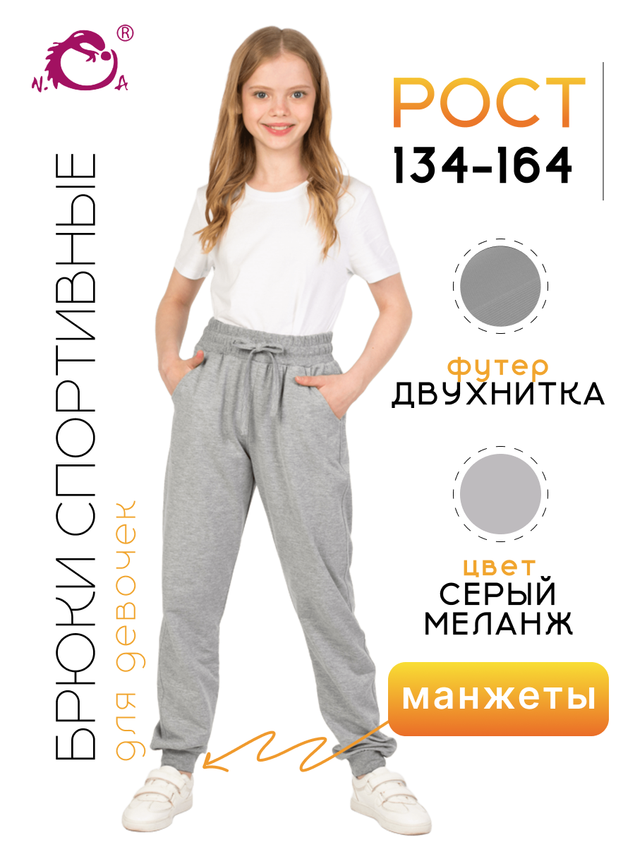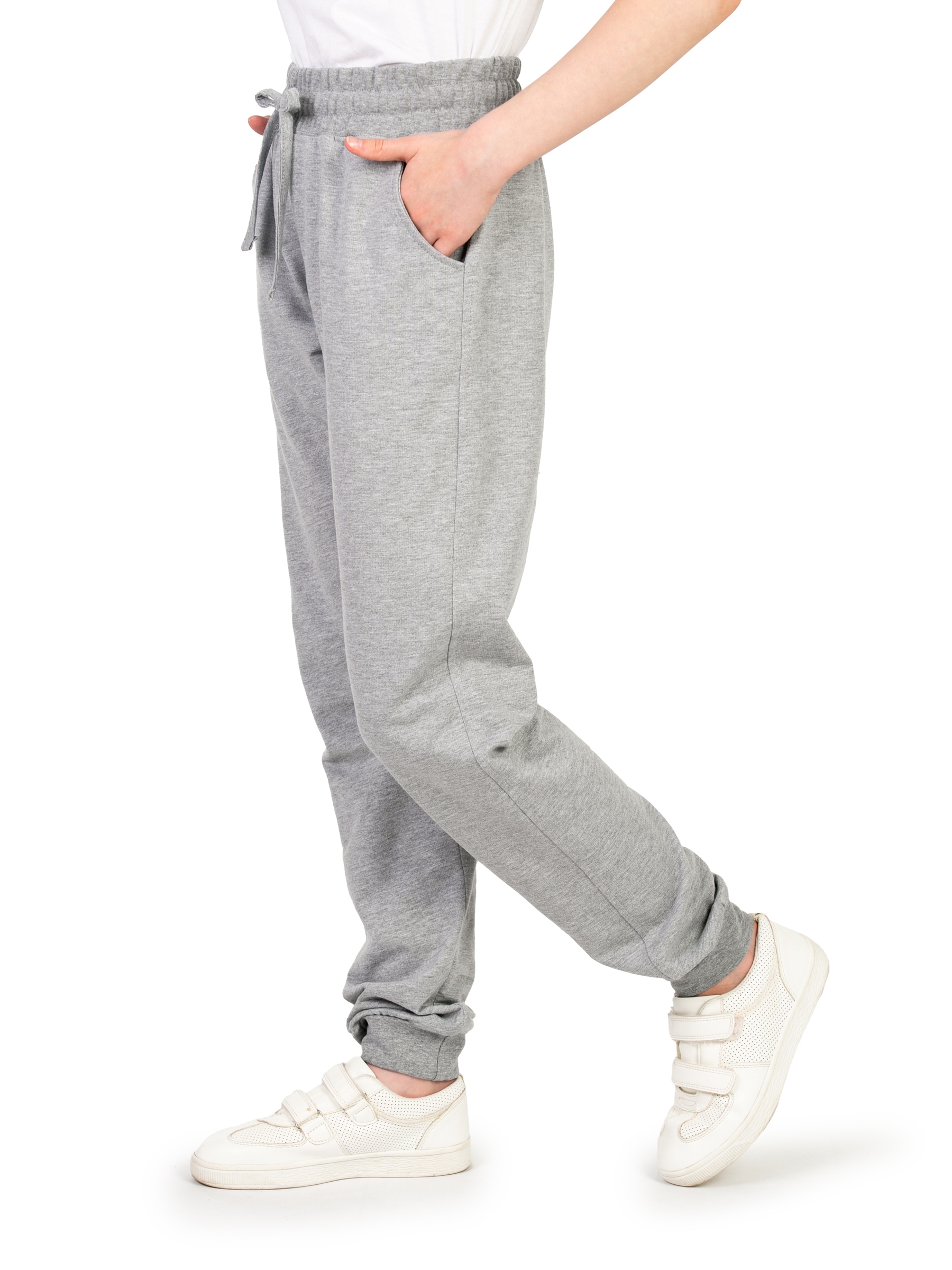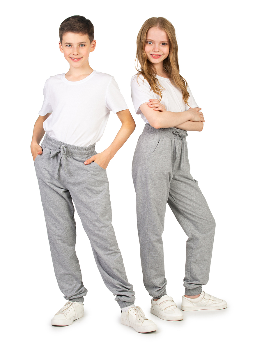 Спортивные брюки для девочки светло-серого цвета идеальны для повседневного ношения. Модель подойдет для дома, спорта и школьной физкультуры на улице. Свободные штаны джоггеры выполнены из качественного футера без начеса. Мягкие хлопковые материалы позволяют телу дышать, приятны на ощупь и очень практичны. За счет добавления полиэстера трикотаж приобретает эластичность и хорошую износостойкость. Не деформируется и не вытягивается в процессе эксплуатации. Прямые брюки на резинке имеют удобный лаконичный дизайн унисекс, поэтому подойдут для девочек и мальчиков, а также подростков возрастом с 8 до 17 лет. Детские джоггеры с манжетами наиболее удачны для занятий спортом. Такая модель обладает комфортной посадкой и при этом не сползает во время активных движений. Благодаря этому спортивки максимально удобно одевать на физру в школе или для тренировок. Модель свободного кроя будет также актуальна для современных танцев, например, хип хоп. Треники для подростка могут использоваться и как домашние трикотажные штаны,