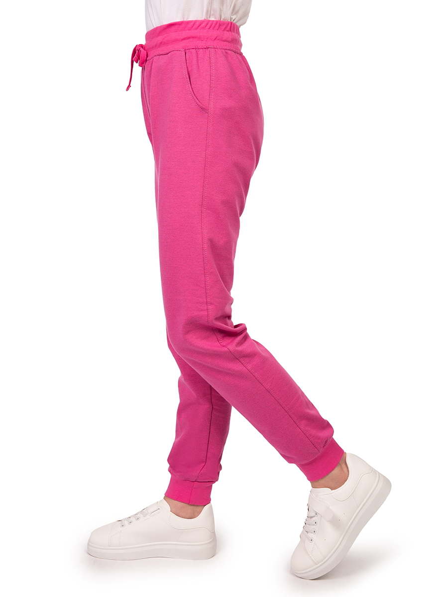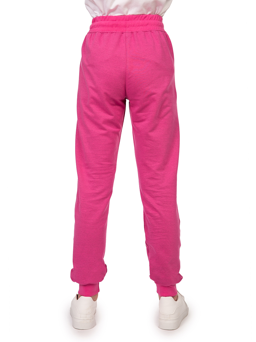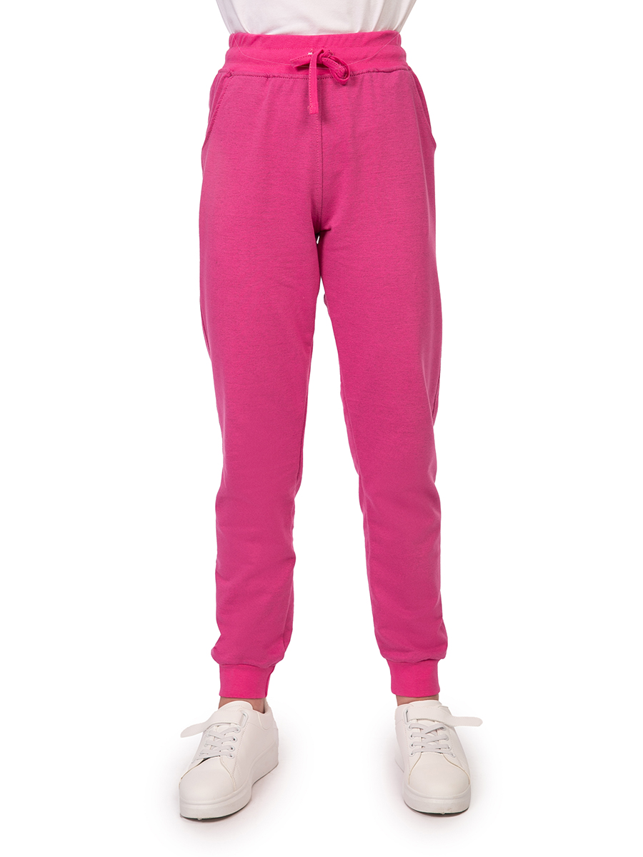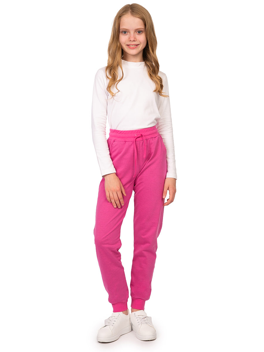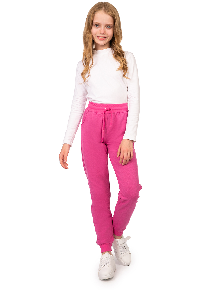 Спортивные брюки для девочки, розового цвета - универсальная и практичная одежда, предназначенная не только для спорта, но и для повседневной носки. Трикотажные брюки подойдут для занятий спортом, в качестве спортивной школьной формы. Штаны спортивные в розовом цвете выполнены из натурального хлопка с небольшим добавлением полиэстера-для сохранения цвета и формы изделия. Брюки комфортны в носке и не сковывают движения. Пояс дополнительно регулируется завязками, низ брючин на манжетах для лучшей фиксации. Брюки с прорезными карманами по бокам– для удобства и комфорта, можно положить необходимые мелочи или телефон. Ткань - футер без начеса (петельчатая изнанка), очень мягкая и дышащая. Модель легко сочетается с майками, фуфайками, тельняшками, футболками, толстовками, кофтами, худи, кроссовками. Брюки спортивные отлично подойдут на любое время года: весна, осень, зима, демисезон, лето. Идеальный вариант для отдыха, дома, спорта, фитнеса, прогулок, бега, танцев, йоги, туризма, физкультуры, тренировок, бега, буду