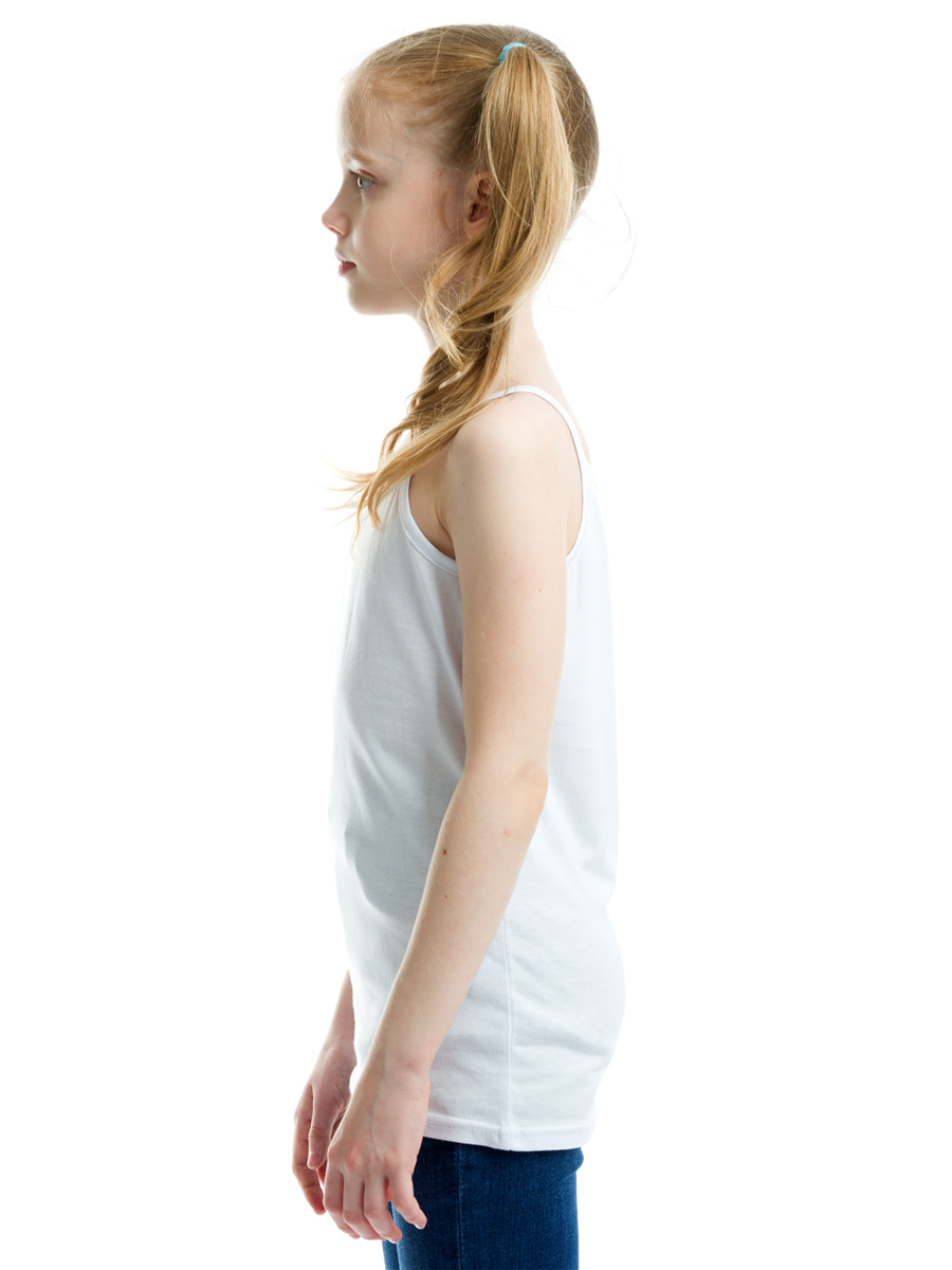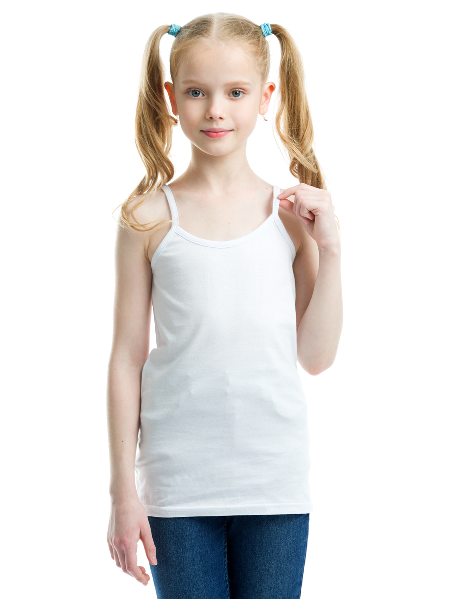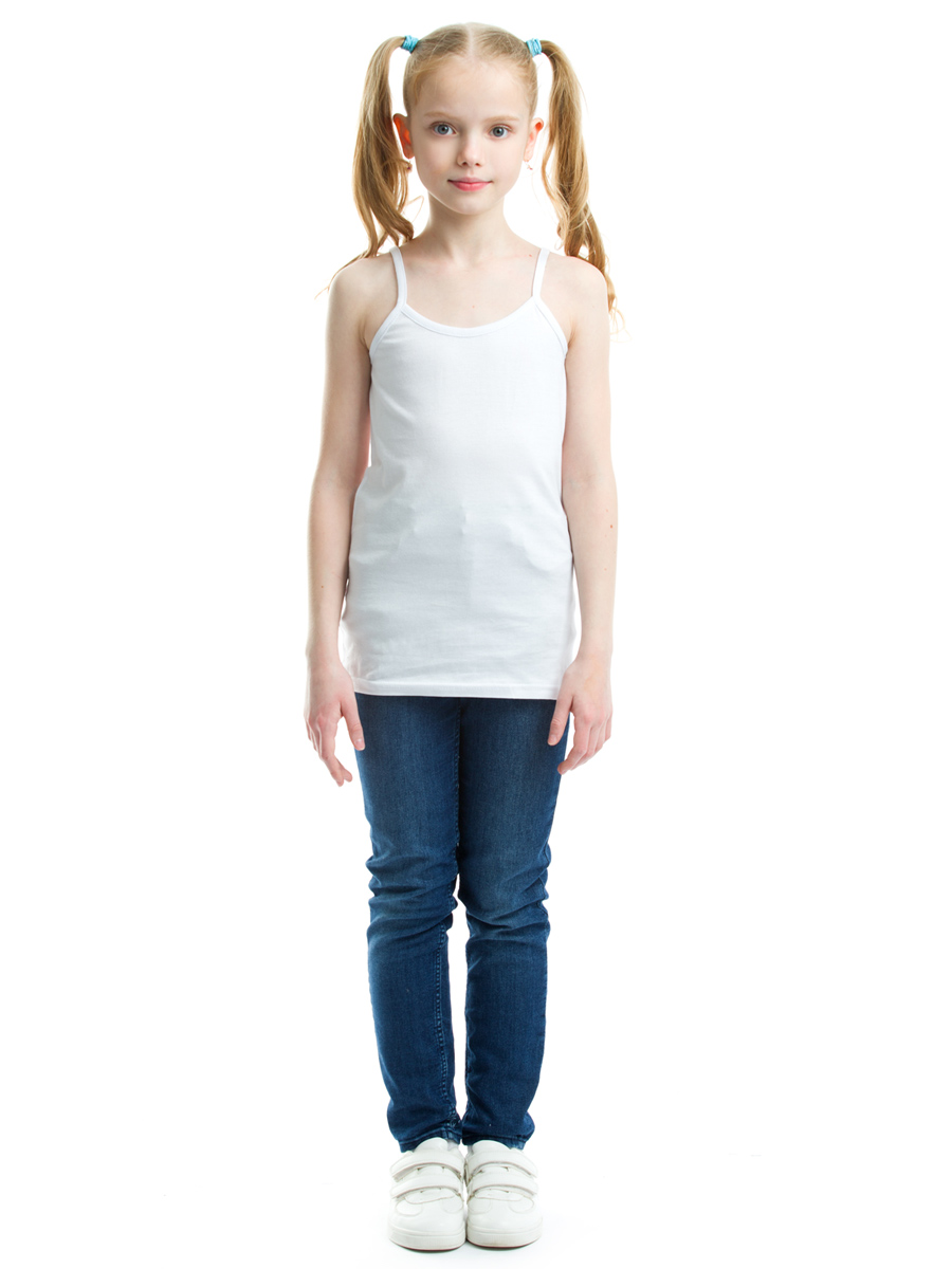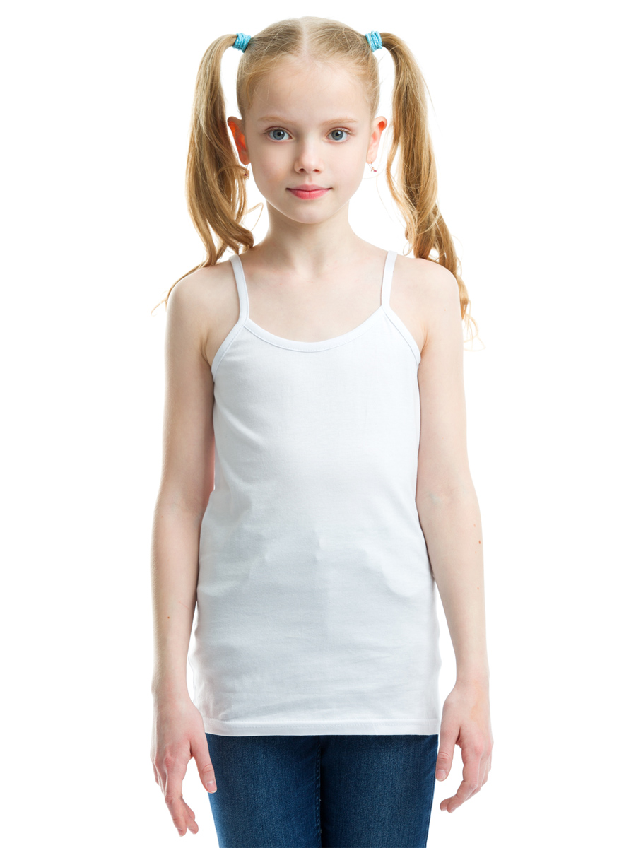 Базовая майка для девочек белого цвета. Майка классического кроя на бретельках, выполнена из натурального хлопка, мягкая и не стесняет движений. Идеальный вариант для ежедневной носки в школу и детский сад. Является одним из основных элементов базового гардероба современных юных модниц!