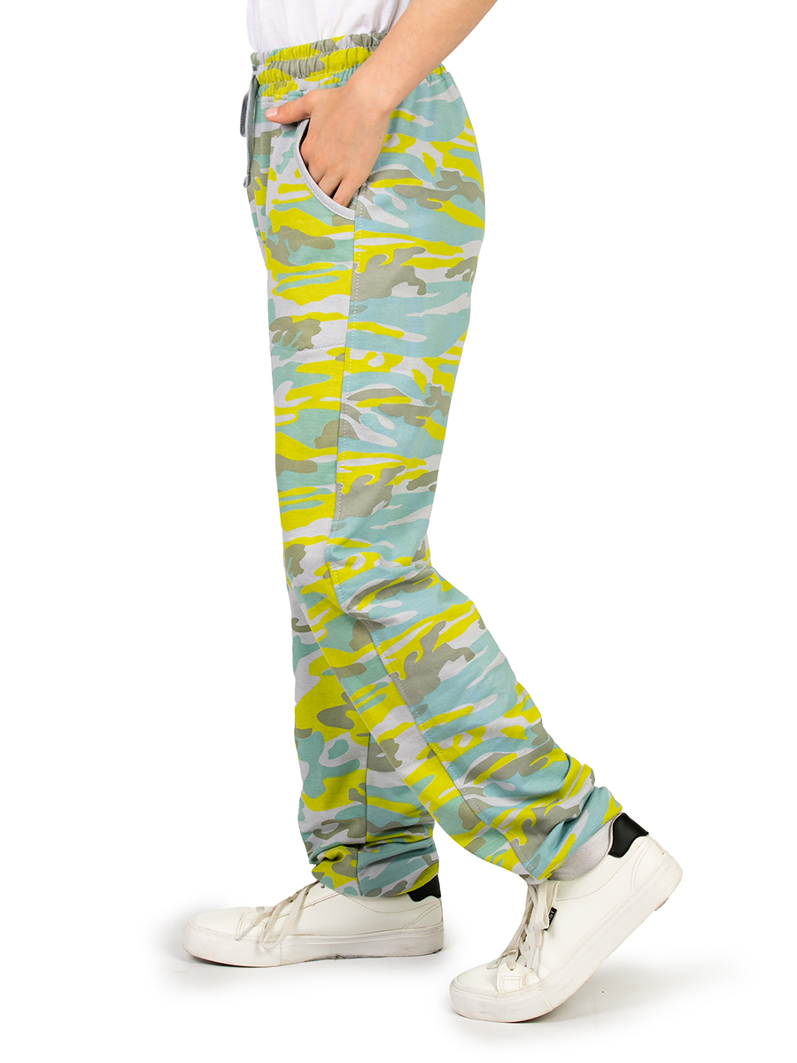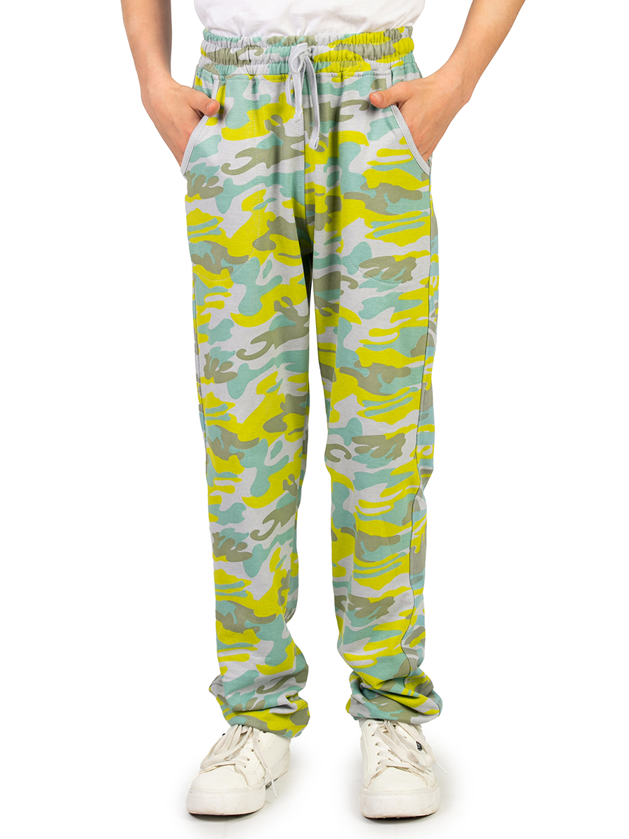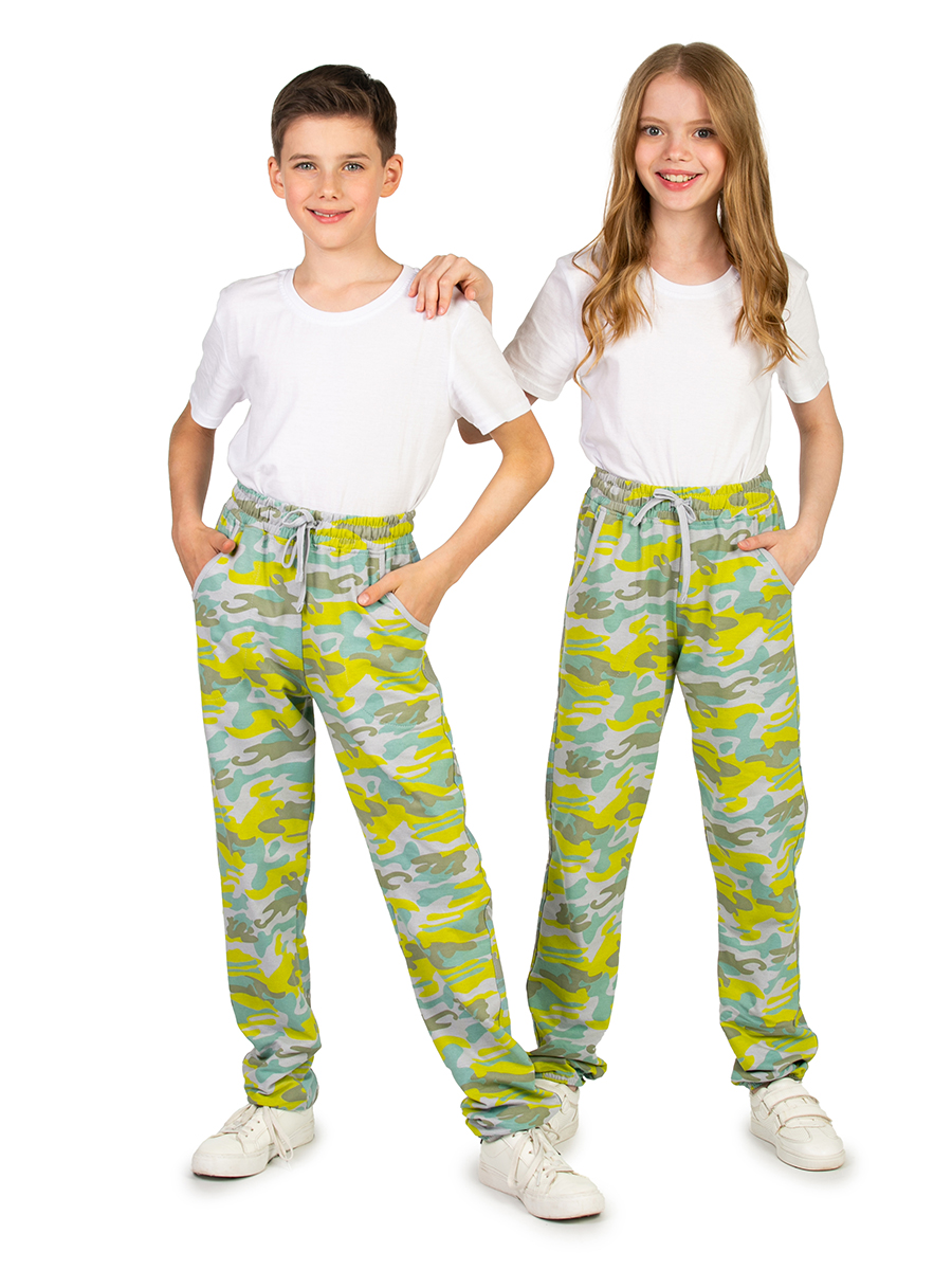 Модные камуфляжные штаны для мальчика салатового цвета станут отличным решением для тех, кто любит военные принты. Милитари прекрасно дополнят повседневные образы или же могут стать элементом экипировки для тематического лагеря. Трикотажные брюки на резинке со шнурком выполнены из качественного хлопка, который приятно облегает тело и при этом обладает хорошей воздухопроницаемостью. Футер без начеса идеально подходит для дачи, прогулок в лесу или спортивных военных тренировок. Хб трикотаж дополнен небольшим количеством полиэстера для повышения износостойкости и практичности. За счет этого хлопковые джоггеры свободного кроя долгое время не теряют своей формы и не вытягиваются после стирок. Свободные спортивные штаны с манжетами удобны для использования в любых условиях. Отлично сочетаются с кедами, кроссовками или ботинками. Модель может дополнить тактические или тренировочные элементы экипировки защитного цвета хаки. Детские мягкие брюки с завязками на поясе также удобны для ношения дома. Как домашние треники,