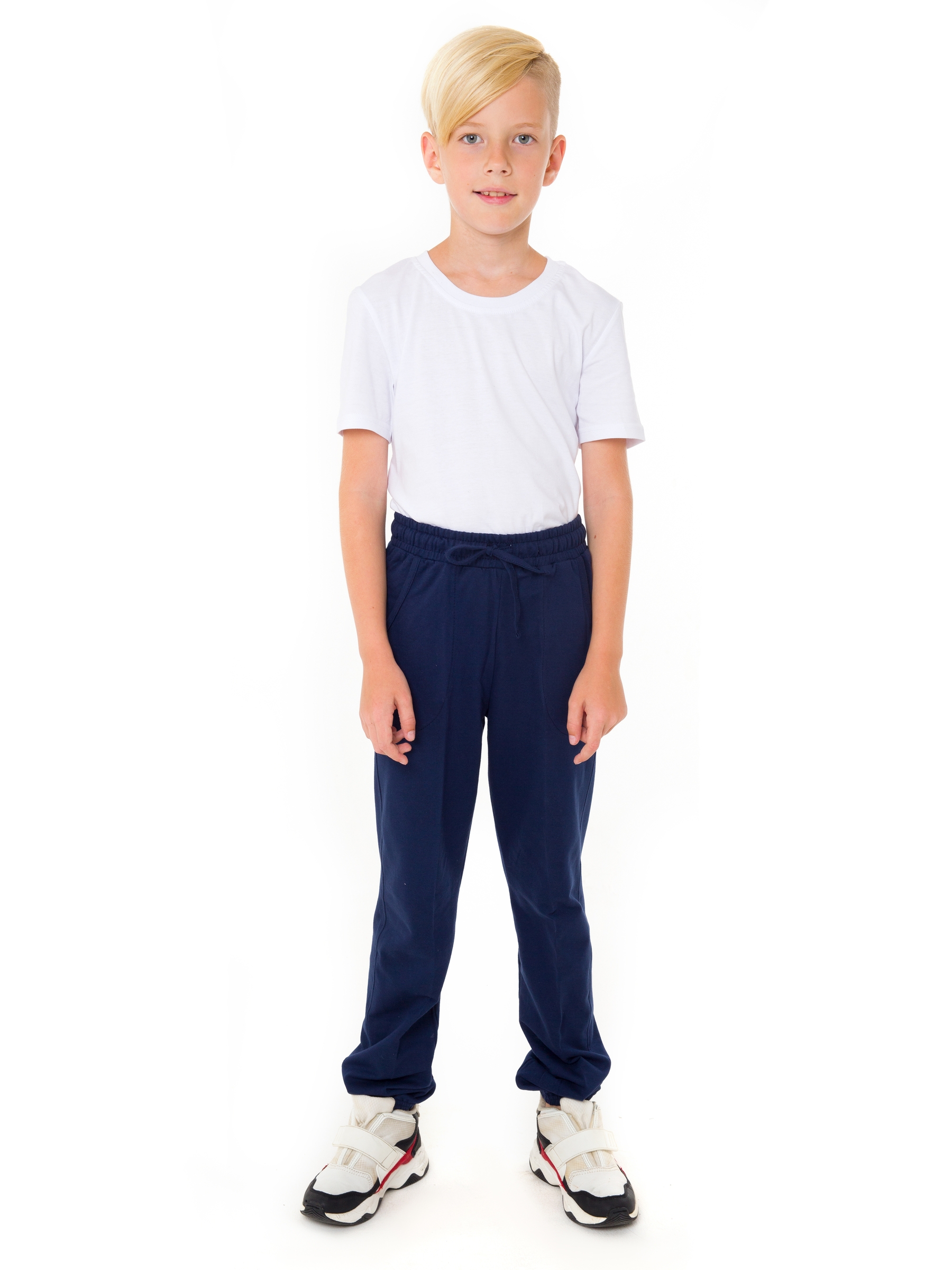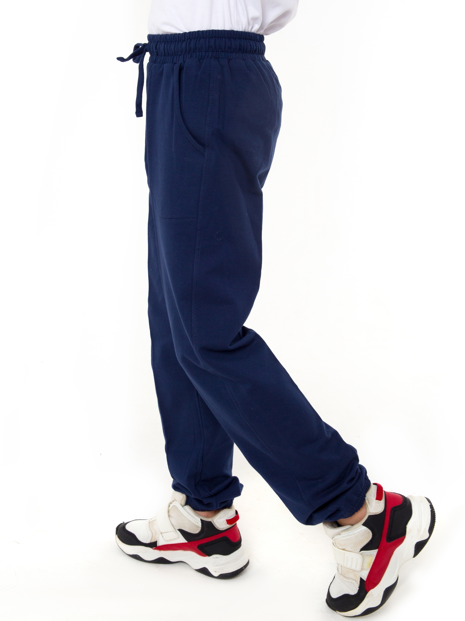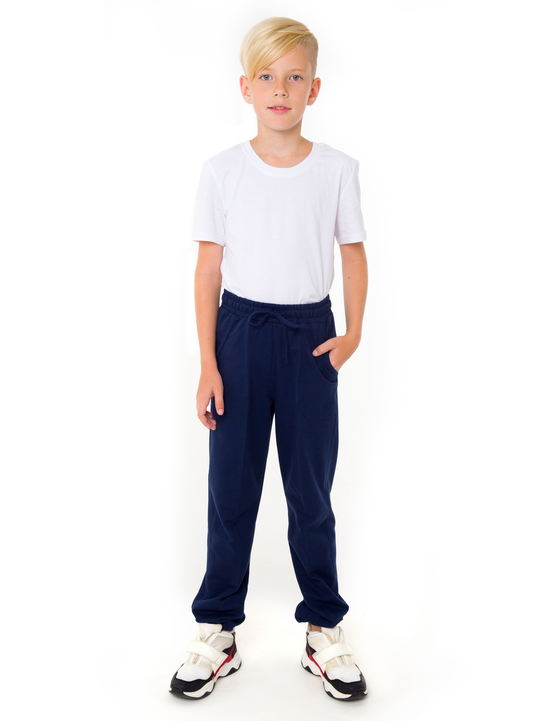 Детские спортивные штаны синего цвета - универсальная одежда в гардеробе каждого мальчика. Сочетание удобства, высокого качества и модного дизайна делает их оптимальным выбором для ежедневной носки, спорт тренировок и уроков физкультуры. Штаны модели джоггеры, на талии с резинкой и завязками на шнурках. По бокам дополнены удобными внутренними карманы, внизу треники собраны на резинку. Легкие спортивки без начеса, сшиты из хлопка с добавлением полиэстера. Плотная хлопковая ткань позволяет коже дышать и создает комфортный микроклимат для тела. А благодаря добавлению полиэстера, штанишки отлично держит форму, не вытягиваются на коленках, не подвержены пилингу. Брюки долговечны и устойчивы к износу. Трико сохранят свой внешний вид даже после активной носки и многочисленных стирок. Спортивное трико оверсайз очень удобно в носке. Свободные брючки для детей не сковывают движений, в них удобно во время активных спортивных занятий, бега и фитнеса. Тренировочные штаны мальчик сможет надеть в составе физкультурной фор