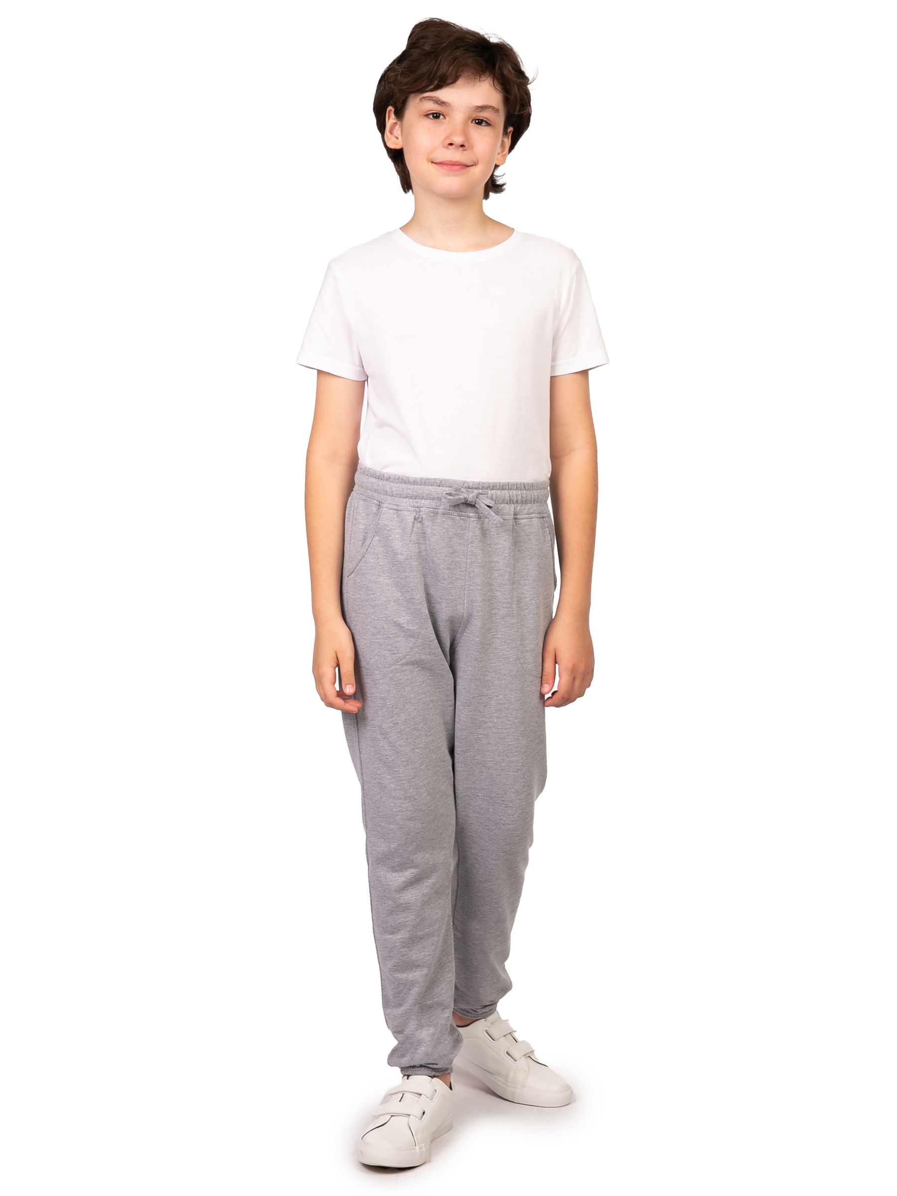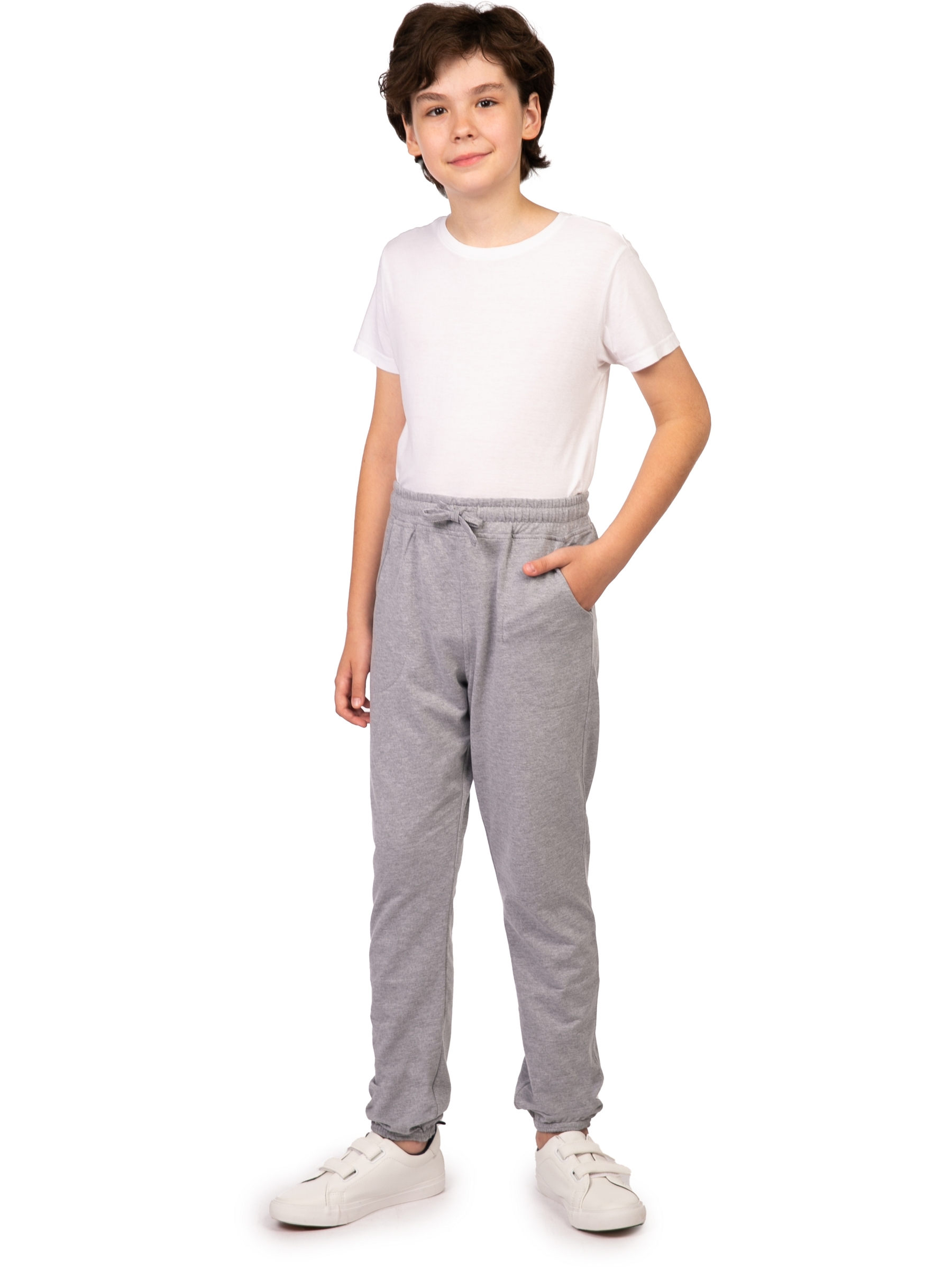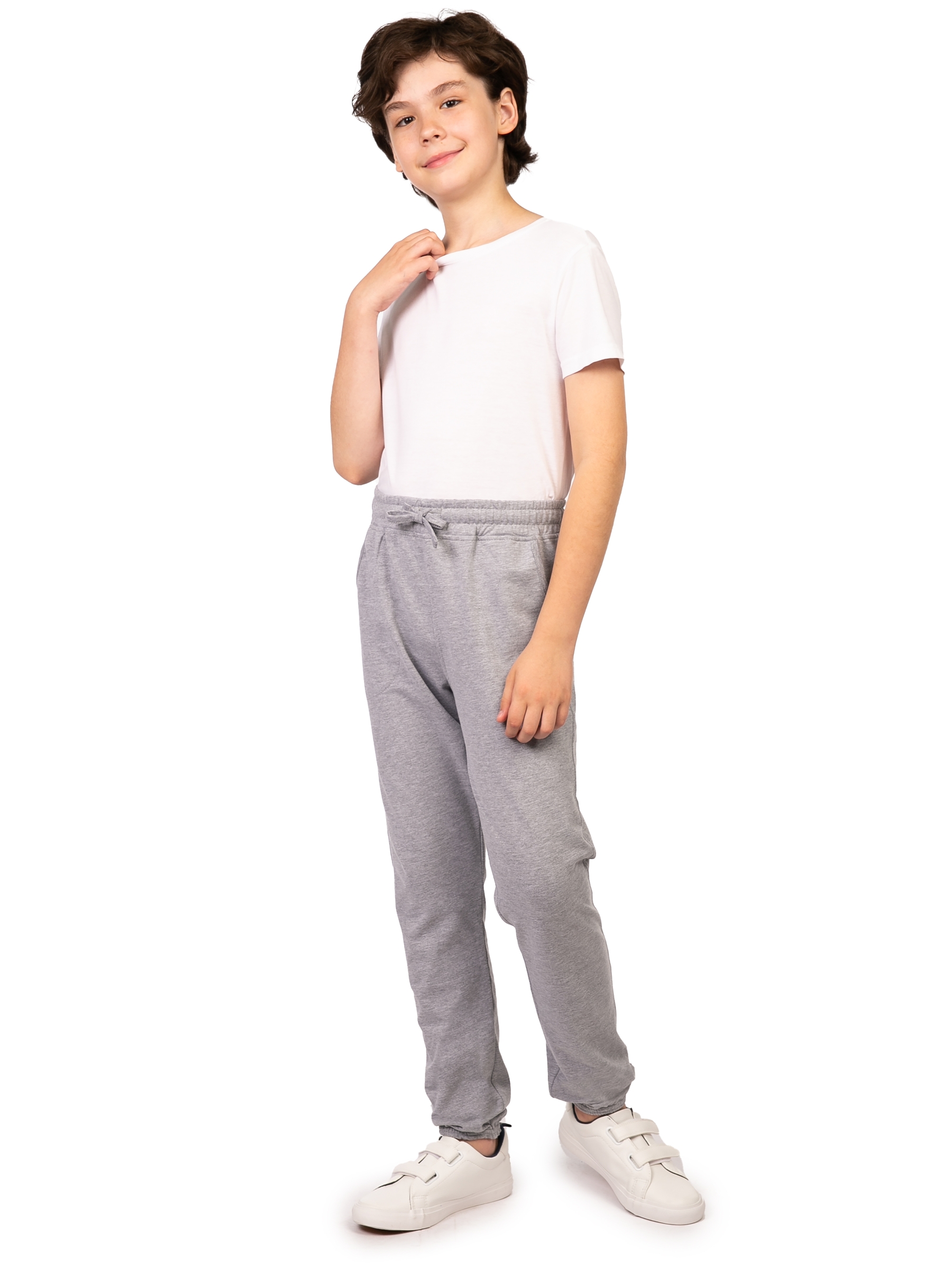 Детские спортивные штаны светло-серого цвета - универсальная одежда в гардеробе каждого мальчика. Сочетание удобства, высокого качества и модного дизайна делает их оптимальным выбором для ежедневной носки, спорт тренировок и уроков физкультуры. Штаны модели джоггеры, на талии с резинкой и завязками на шнурках. По бокам дополнены удобными внутренними карманы, внизу треники собраны на резинку. Легкие спортивки без начеса, сшиты из хлопка с добавлением полиэстера. Плотная хлопковая ткань позволяет коже дышать и создает комфортный микроклимат для тела. А благодаря добавлению полиэстера, штанишки отлично держит форму, не вытягиваются на коленках, не подвержены пилингу. Брюки долговечны и устойчивы к износу. Трико сохранят свой внешний вид даже после активной носки и многочисленных стирок. Спортивное трико оверсайз очень удобно в носке. Свободные брючки для детей не сковывают движений, в них удобно во время активных спортивных занятий, бега и фитнеса. Тренировочные штаны мальчик сможет надеть в составе физкультур