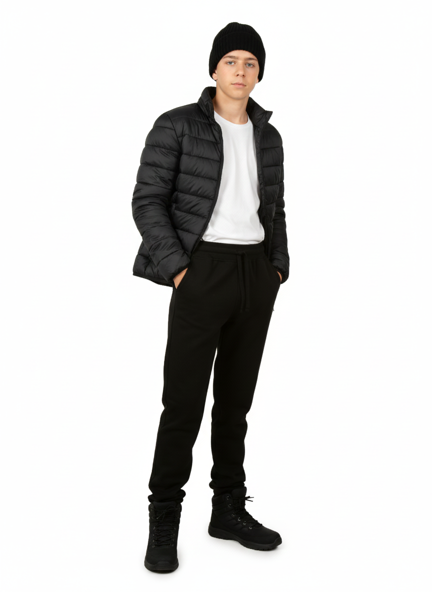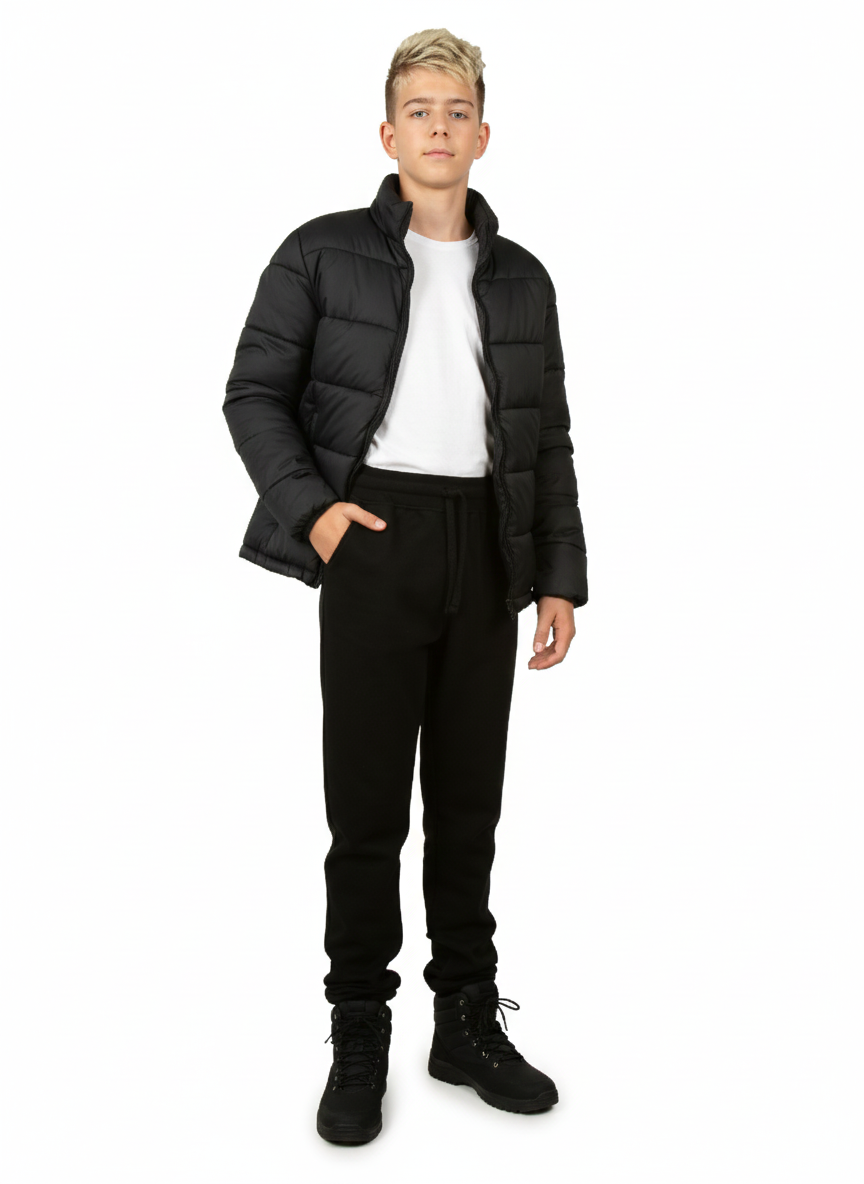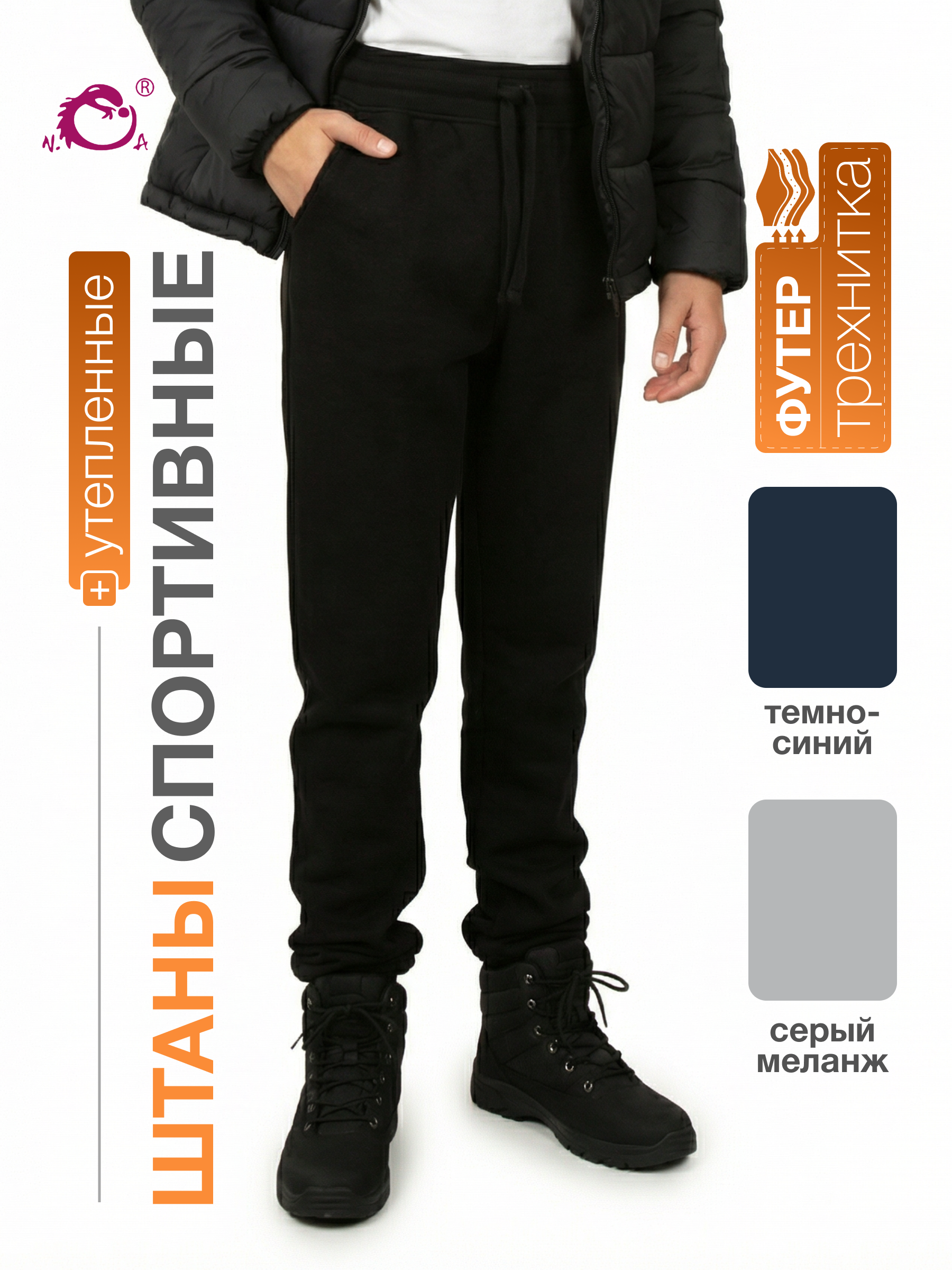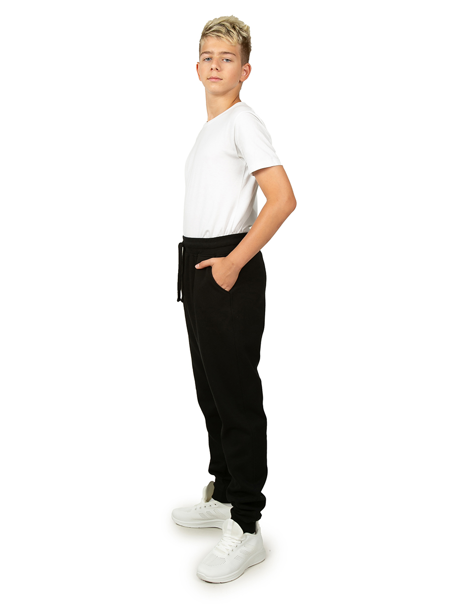 Утепленные спортивные брюки для мальчика черного цвета станут удачным решением для пополнения базового гардероба на осень зиму. Теплые штаны с начесом подойдут как для повседневного ношения и прогулок, так и для зимнего спорта. Модель выполнена из качественного хлопка футера 3-нитка. Такой трикотаж с утеплением одновременно мягкий и плотный. Помимо этого, трикотажные хлопковые материалы с добавлением полиэстера обладают повышенной износостойкостью, хорошо держат форму и яркость цвета. Осенние брюки с начесом имеют традиционную форму с манжетами внизу, а также пояс на резинке со шнурком. За счет этого, джоггеры удобно одевать под зимние штаны в качестве 1го слоя. Модель также будет актуальна для физкультуры и тренировок на улице. Модель свободного кроя с комфортной средней посадкой очень универсальна. Детские демисезонные брюки подойдут для мальчиков и подростков, а также полных детей ростом от 128 до 168 см. Чтобы подобрать верный размер, соотнесите комплекцию подростка с таблицей в фотографиях. Свободные х