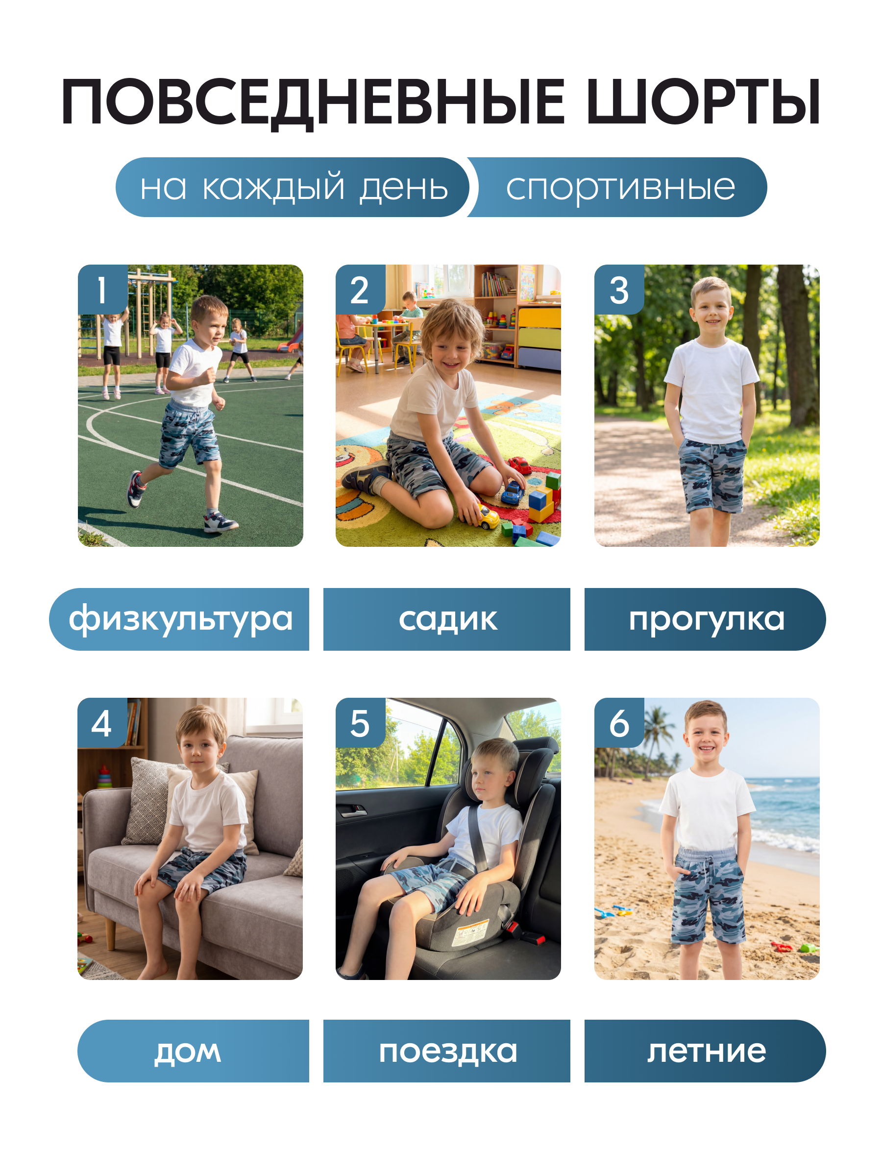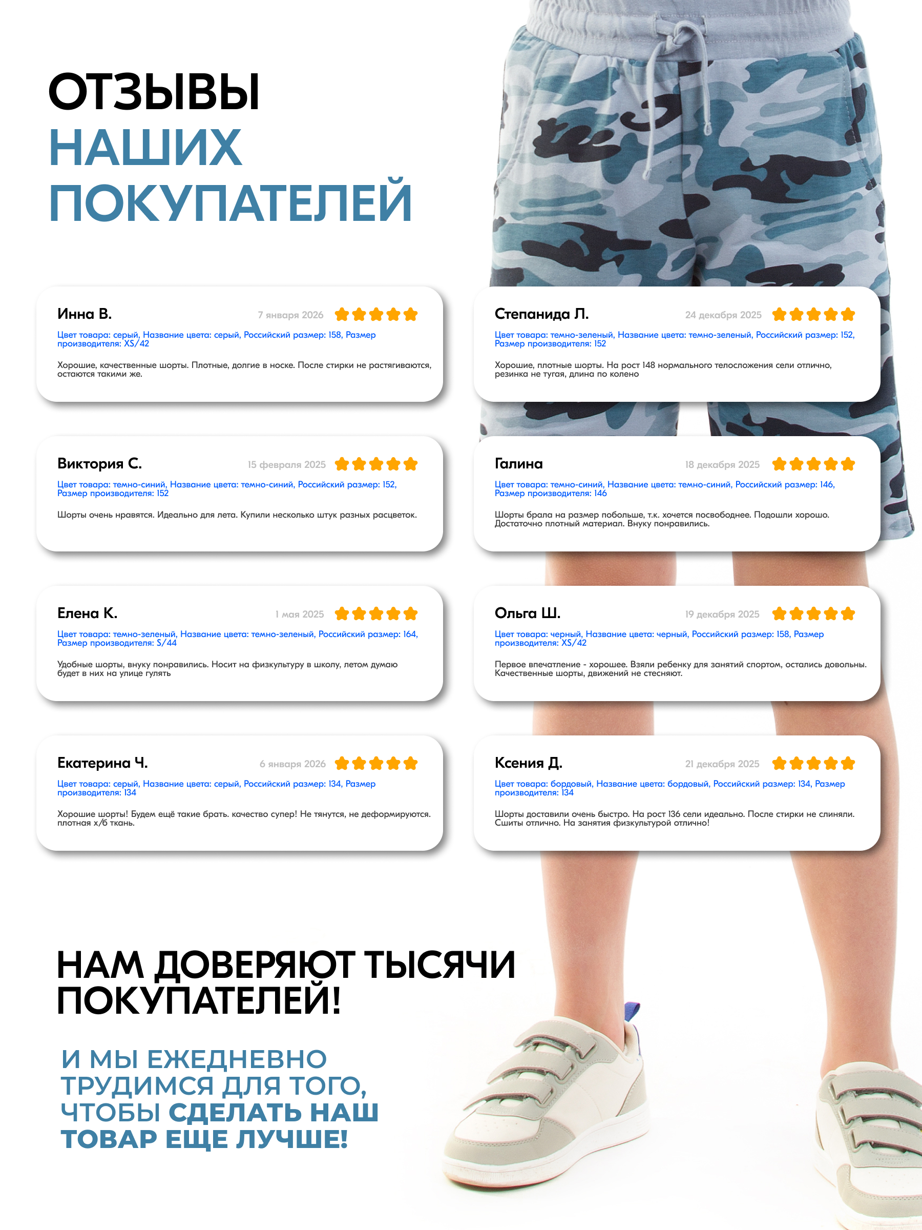Камуфляжные шорты для мальчика серого цвета подойдут тем, кто не любит однообразия. Милитари никогда не выходит из моды и всегда находит своих любителей. Интересные военные принты дополняет необычный пиксель, который делает образ более оригинальным. Модель свободного прямого кроя ниже колен выполнена из качественного трикотажа футер без начеса. Мягкий и дышащий хб материал дополнен полиэстером для большей практичности. За счет этого удлиненные прямые широкие шортики хорошо держат форму и не вытягиваются в процессе эксплуатации. Спортивные длинные шорты на резинке со шнурком хорошо садятся на любую фигуру, подойдут для худых подростков или полных детей ростом от 128 до 164 см. Чтобы выбрать корректно размер, мы рекомендуем отталкиваться от таблицы в фотографиях, где Вы сможете увидеть корректные замеры. Свободные бриджи с завязками на поясе отлично вписываются в гардероб и комбинируются с другой одеждой. Ждут Вашего ребенка или подростка повседневные будни или домашние детские забавы. Модель по колено будет