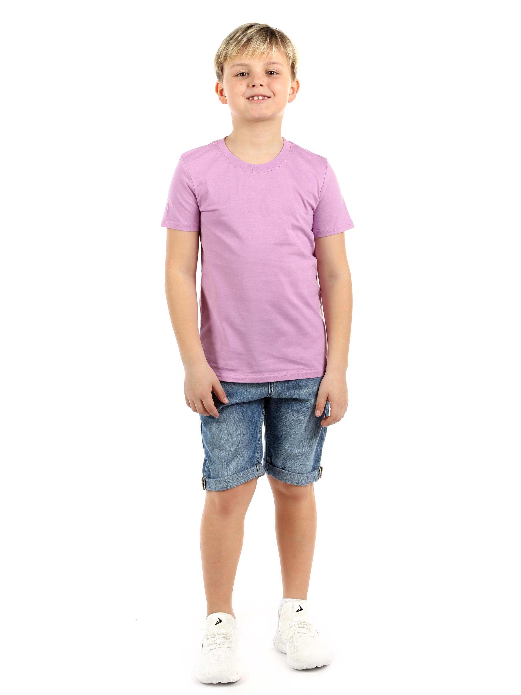 Сиреневая футболка для мальчика - базовая вещь в гардеробе. Классическая короткая модель прямого кроя с коротким рукавом. Футболка сшита из натуральной ткани 100% хлопок. Плотная хлопковая ткань обладает дышащими и гипоаллергенными свойствами, идеально подходит для чувствительной детской кожи. Стильная однотонная хб футболка без рисунка - практичная одежда на любой случай. В летнюю погоду она поможет составить модный винтажный кэжуал образ для прогулок. Благодаря широкому свободному крою, футболка очень удобна в носке. Мальчики школьники смогут дополнить ею школьную физкультурную форму на уроки физкультуры (на физру). Или надеть для занятий спортом и тренировок в спортзале или на улице. Красивая тренировочная футболка - отличный выбор для бега и других видов спорта. Футболка без принта - удобная домашняя одежда для дома, сна и отдыха. Для маленьких мальчиков - футболка станет частью спортивной формы в детском садике или наряда для casual носки на каждый день. Благодаря дизайну унисекс, футболка подойдет и
