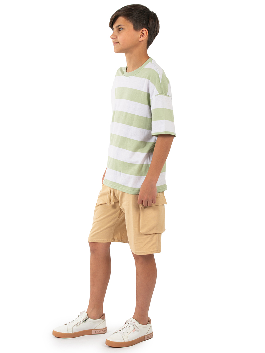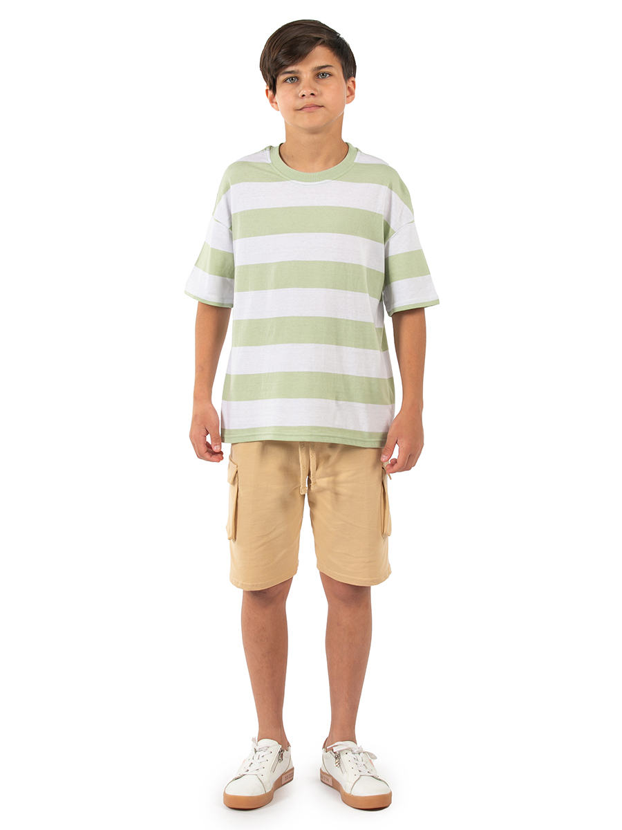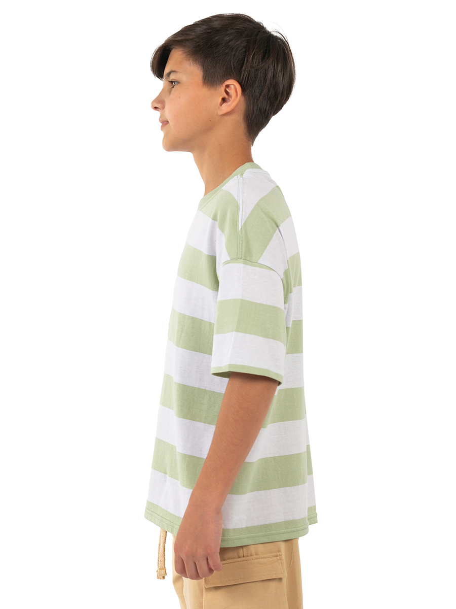 Стильная полосатая футболка для мальчика оливкового цвета прекрасно подходит для повседневного ношения. Мягкая хлопковая ткань приятная на ощупь и позволяет коже дышать, поэтому обеспечивает максимальный комфорт в течение всего дня. Трикотаж из натурального 100% хлопка полностью гипоаллергенен и подходит для детей с чувствительной кожей. Спортивная или повседневная модель оверсайз со спущенным плечом уже несколько сезонов является трендовой, поэтому особенно актуальна для подростка. Модное лекало прямого свободного кроя делает образ более непринужденным и отлично сочетается как со спортивным стилем, так и с базовой одеждой на каждый день. Длинная детская футболка комфортна для спорта и тренировок. Ее можно носить дома или на улице для встреч с друзьями. Молодежная домашняя футболка в полоску будет актуальна для мальчиков, девочек и подростков любой комплекции ростом от 128 до 164 см. Для того, чтобы Вы смогли подобрать для себя нужный размер, воспользуйтесь таблицей в фотографиях и учитывайте особенности ove