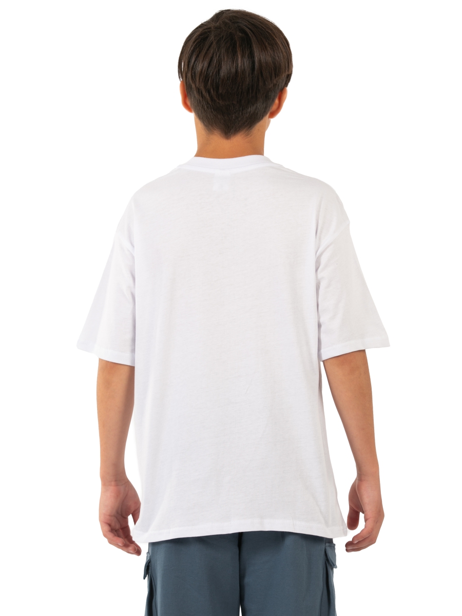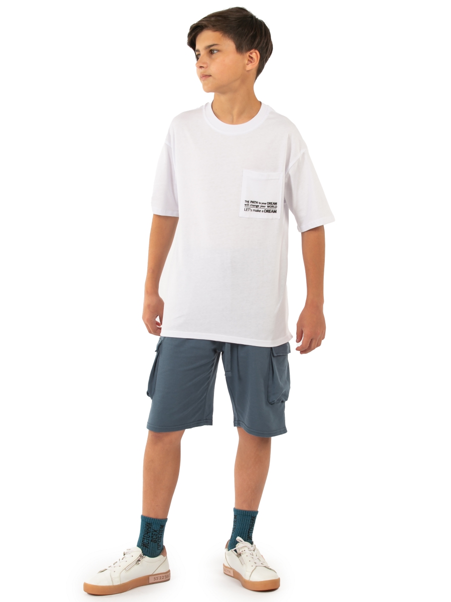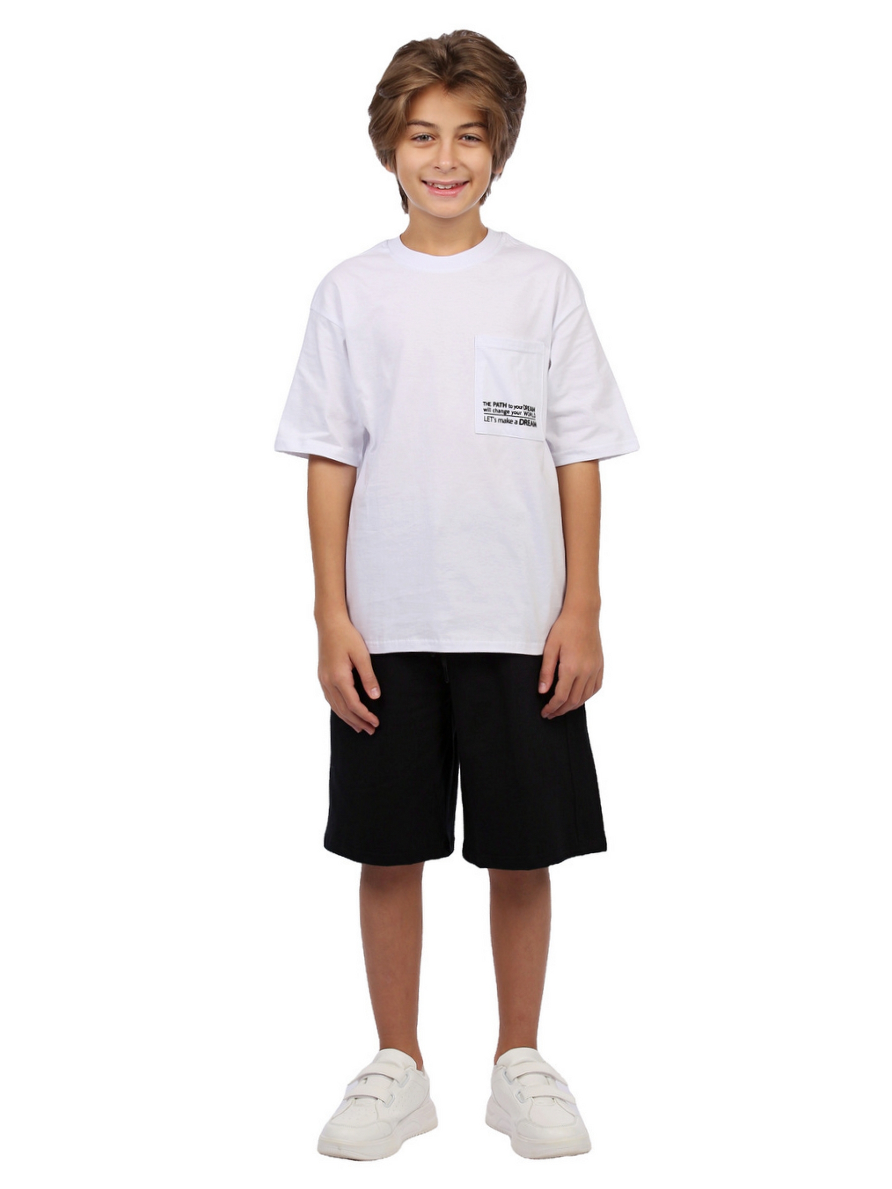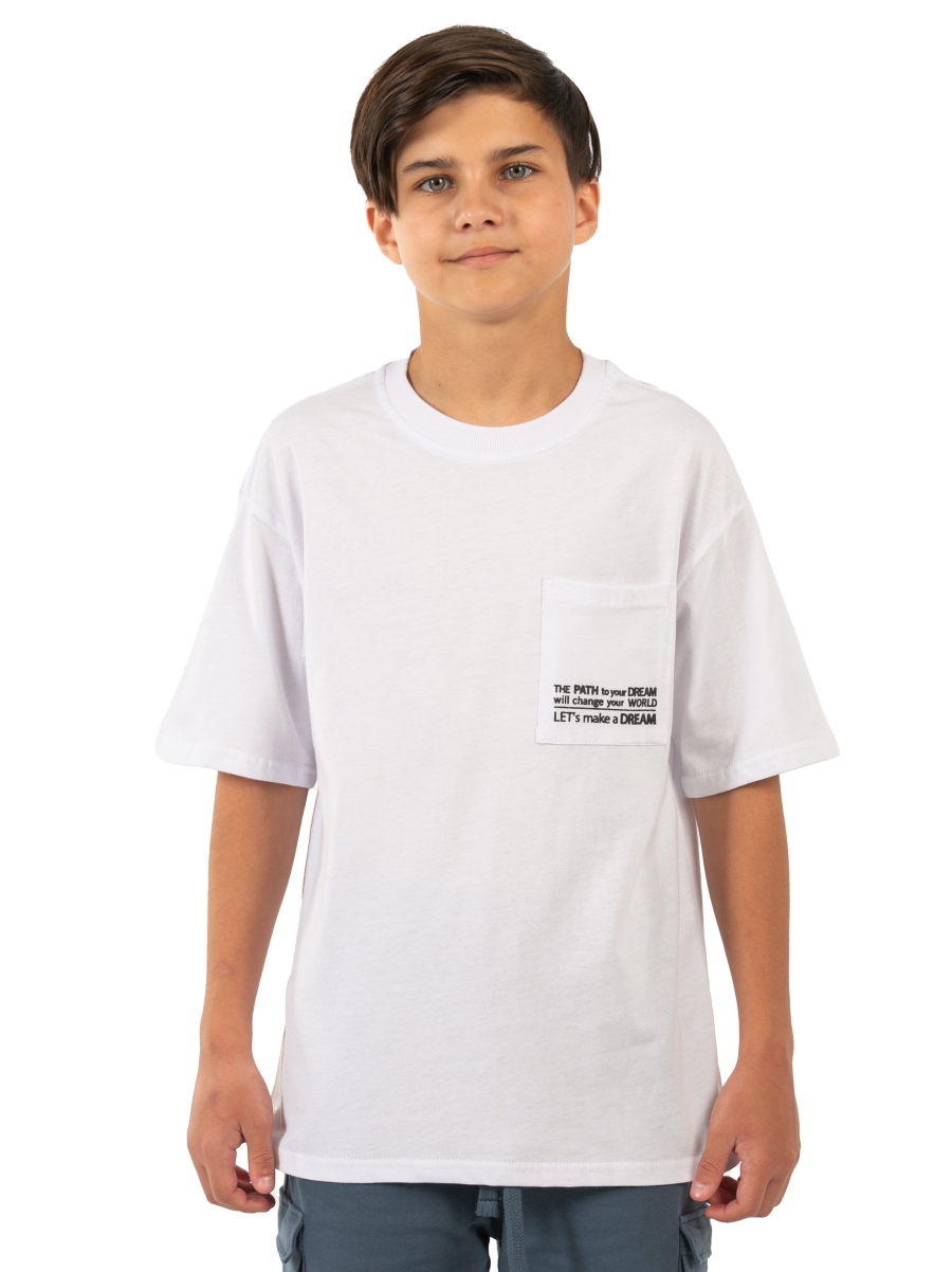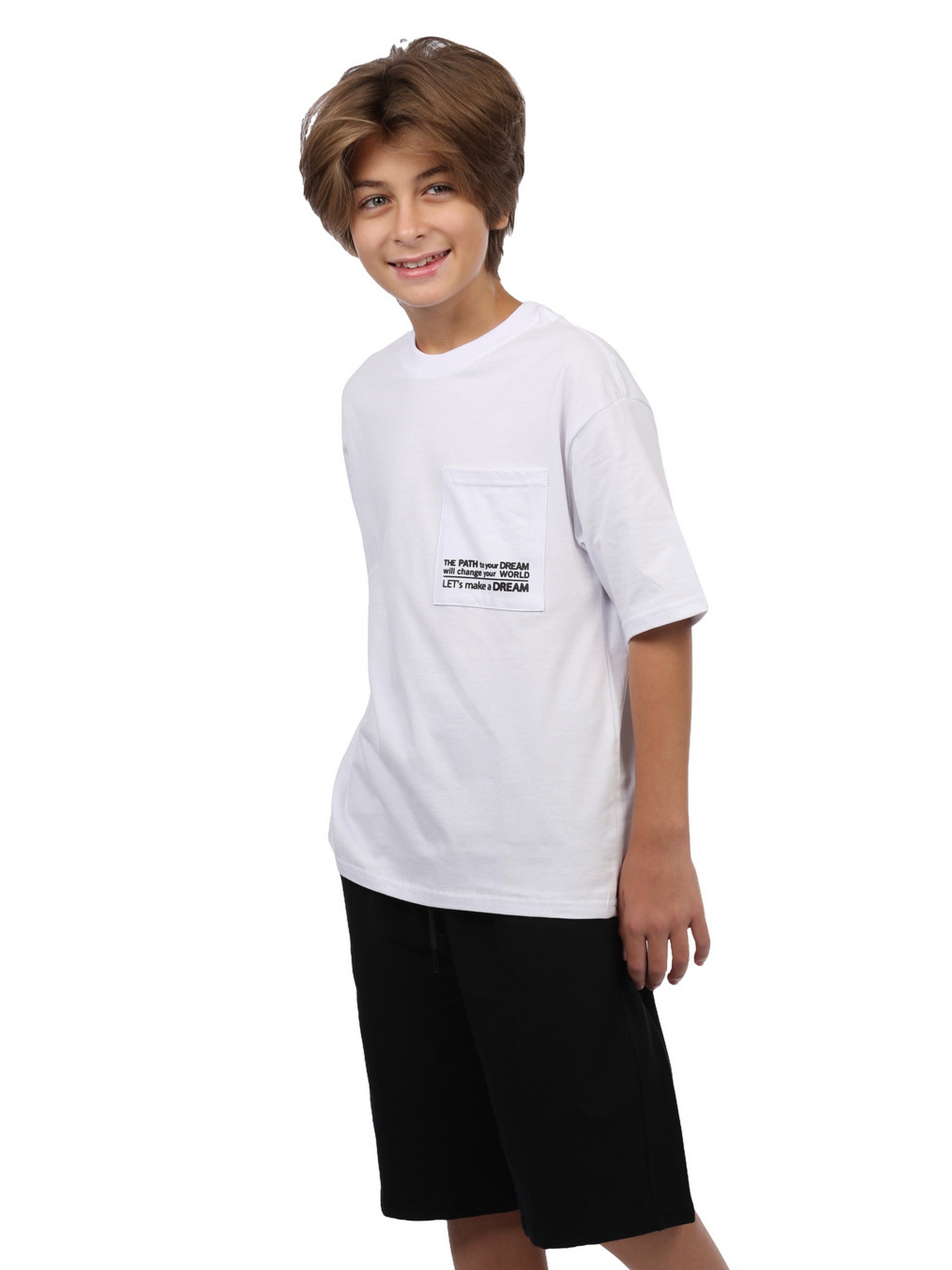 Стильная однотонная футболка с карманом белого цвета сочетает в себе удобство свободного кроя и оригинальность декоративного элемента. Базовая модель прекрасно вписывается в гардероб мальчиков, девочек и подростков, гармонично дополняет различные образы на каждый день и обеспечивает комфорт в процессе ношения. Универсальная детская футболка для мальчика выполнена из 100% хлопка с типом трикотажа кулирная гладь. Одновременно плотная и мягкая хлопковая ткань идеальна на повседневное ношение, т.к. обладает хорошей воздухопроницаемостью и полностью гипоаллергенна. Такое свойство хб материалов особенно важно для детей с чувствительной кожей, склонной к раздражению. Прямая широкая модель имеет покрой оверсайз со спущенным плечом. За счет этого, она смотрится очень непринужденно, а модная яркая расцветка делает образ более стильным. Длинная трикотажная футболочка прекрасно сочетается с любым образом, будь то домашняя, спортивная или неформальная кэжуал одежда. Она подойдет для ношения дома или прогулок на улице в т