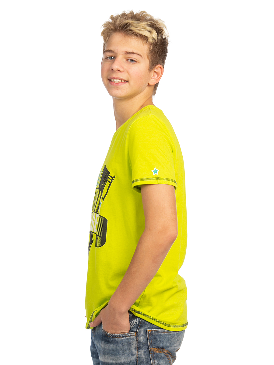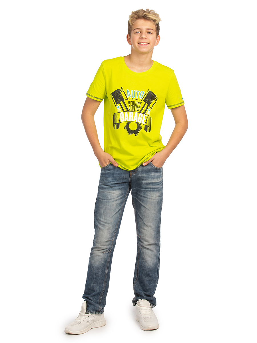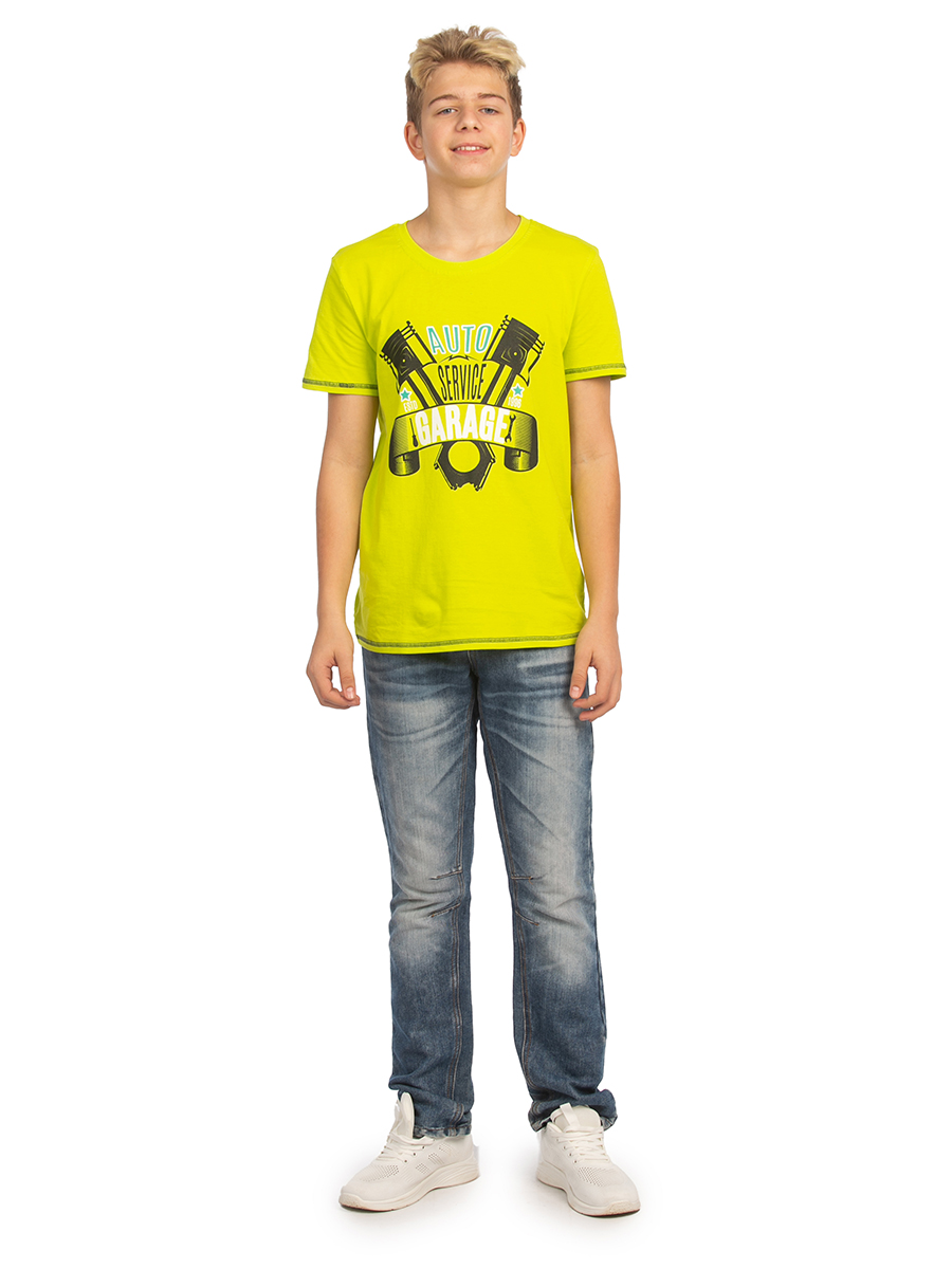 Футболка для мальчика желтого цвета с принтом - базовая вещь в гардеробе. Классическая короткая модель прямого кроя с коротким рукавом. Футболка сшита из натуральной ткани 100% хлопок. Плотная хлопковая ткань обладает дышащими и гипоаллергенными свойствами, идеально подходит для чувствительной детской кожи. Стильная однотонная хб футболка с принтом - практичная одежда на любой случай. В летнюю погоду она поможет составить модный винтажный кэжуал образ для прогулок. Благодаря широкому свободному крою, футболка очень удобна в носке. Мальчики школьники смогут дополнить ею школьную физкультурную форму на уроки физкультуры (на физру). Или надеть для занятий спортом и тренировок в спортзале или на улице. Красивая тренировочная футболка - отличный выбор для бега и других видов спорта. Яркая футболка - удобная домашняя одежда для дома, сна и отдыха. Для маленьких мальчиков - футболка станет частью спортивной формы в детском садике или наряда для casual носки на каждый день. Трикотажная фитнес футболка проста в уход