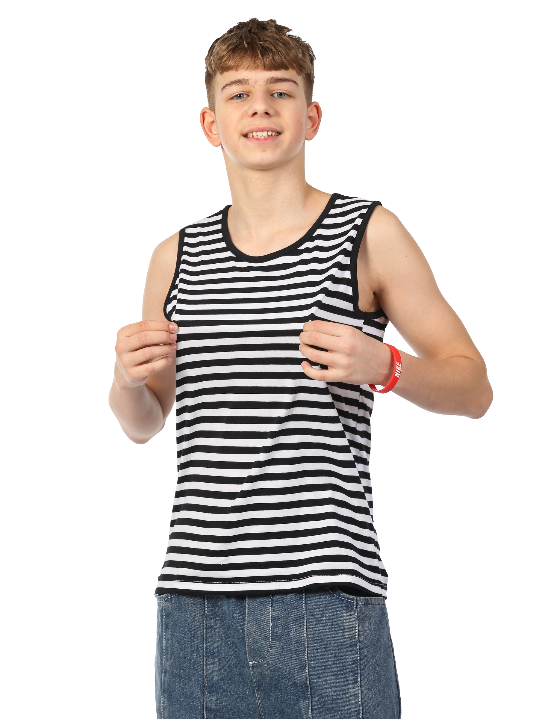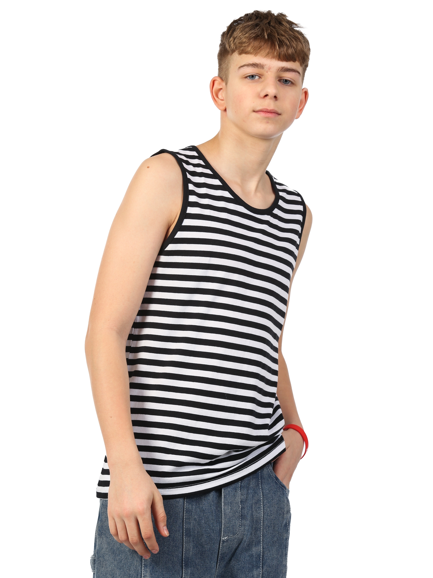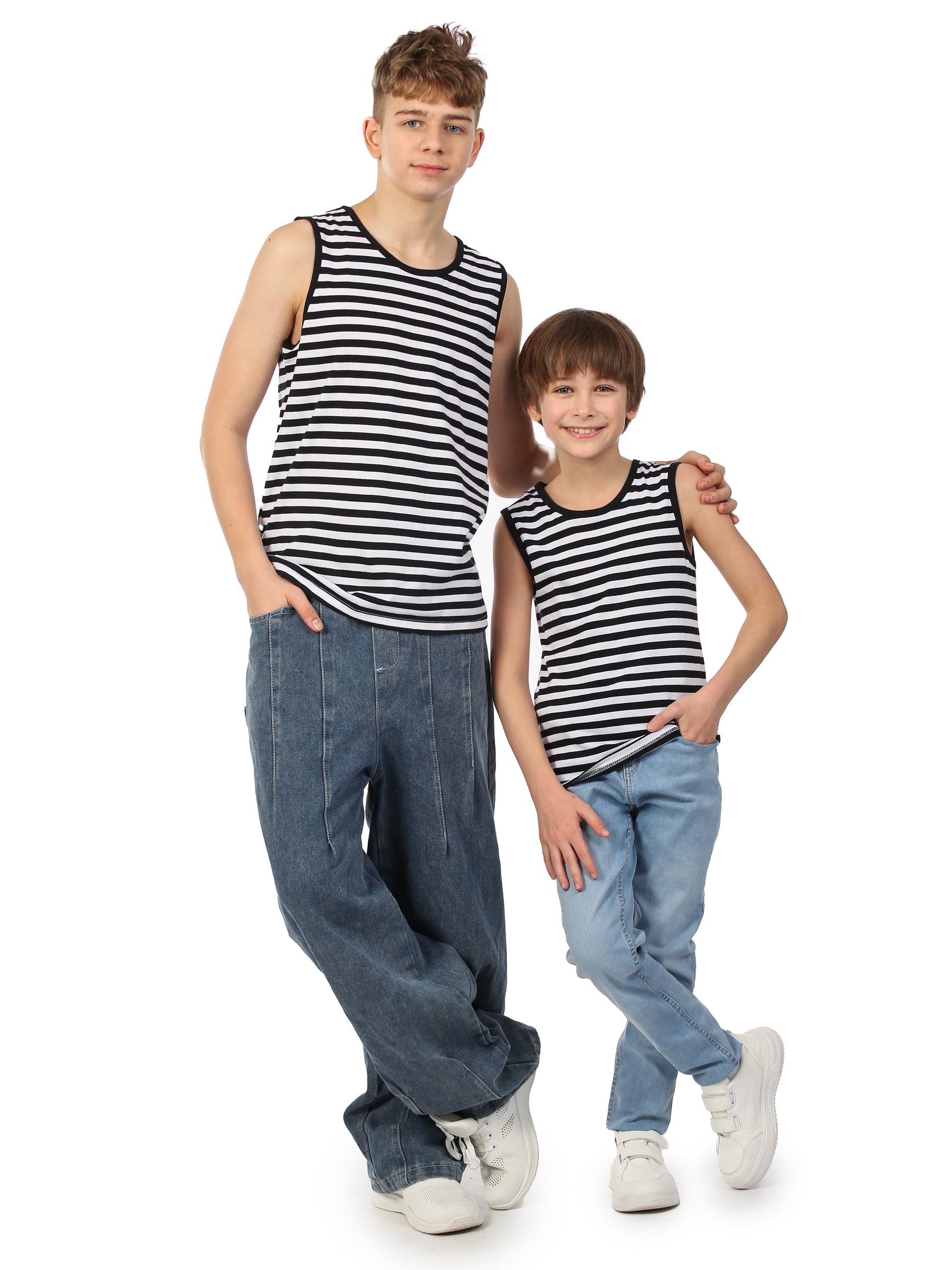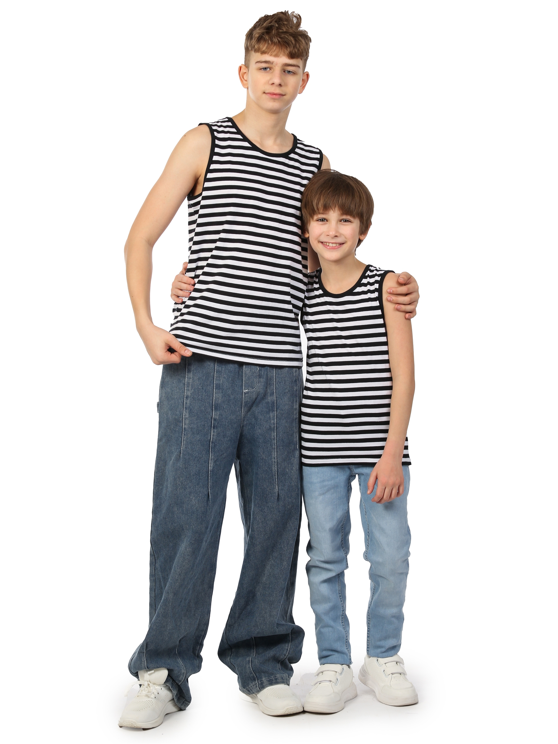 Майка тельняшка детская, классического черного цвета. Майка выполнена из натурального 100% хлопка. Особенность нашей майки заключается в том, что она изготовлена из вязаного полотна, полоски не крашены а именно связаны! Майка-тельняшка изготовлена из трикотажного кулирного полотна. Удобная майка, как и футболка, отлично подойдет на любой сезон. Повседневная классическая спортивная майка - станет отличным подарком ребенку на день ВДВ ВМФ 9 мая. Детская майка-тельняшка – это идеальное решение для малышей в жаркие летние дни. Она выполнена из высококачественного хлопка, обеспечивая максимальную комфортность и свободу движения. Эта майка-тельняшка идеально подходит для активного отдыха на свежем воздухе и занятий спортом. Один из главных преимуществ этой майки-тельняшки – ее легкость и воздухопроницаемость. Она не сковывает движения и позволяет коже дышать, не вызывая потоотделения и дискомфорта в жару. К тому же, изделие не стесняет движения рук, что особенно важно для активных детей. Другое преимущество данной