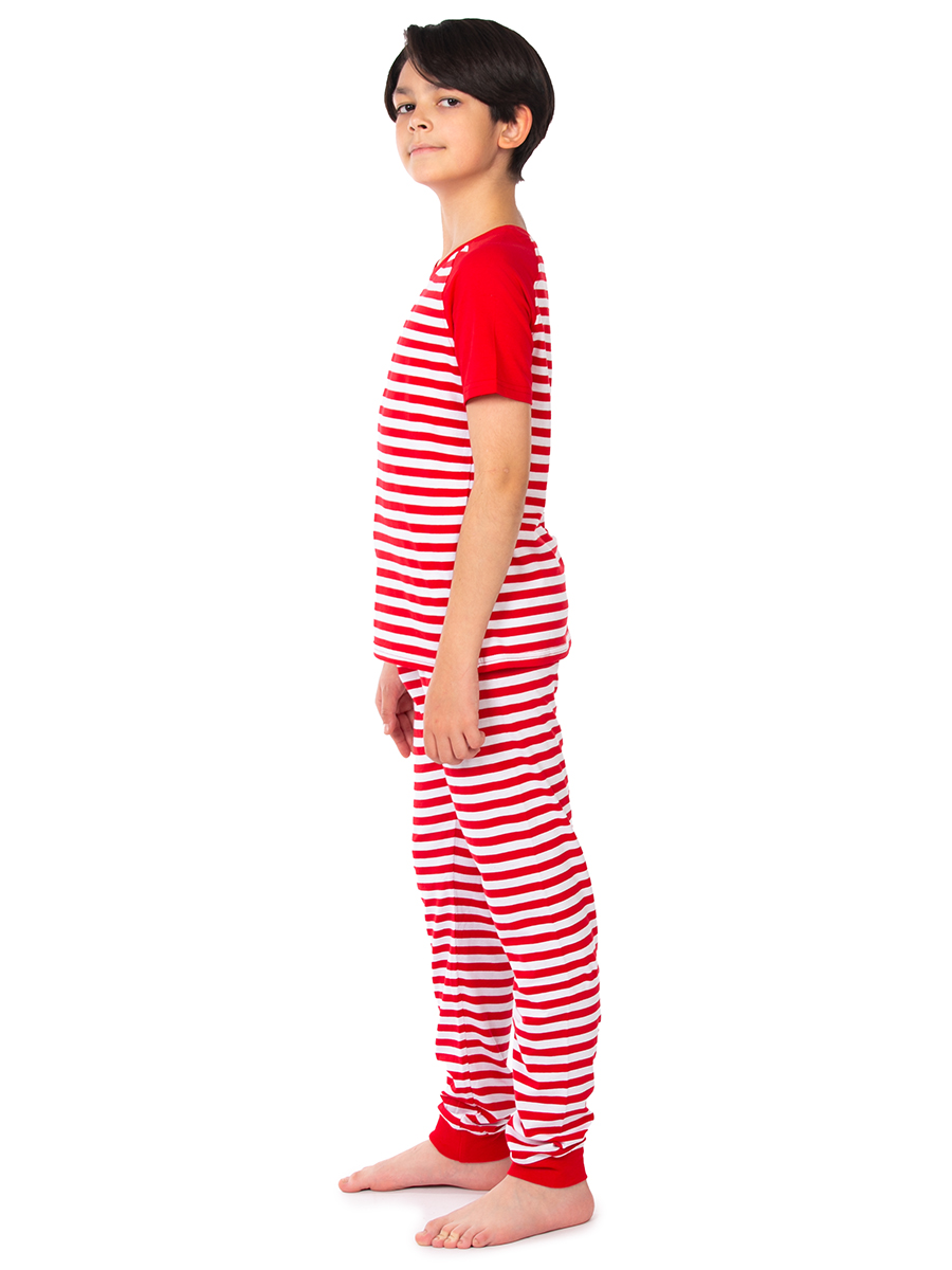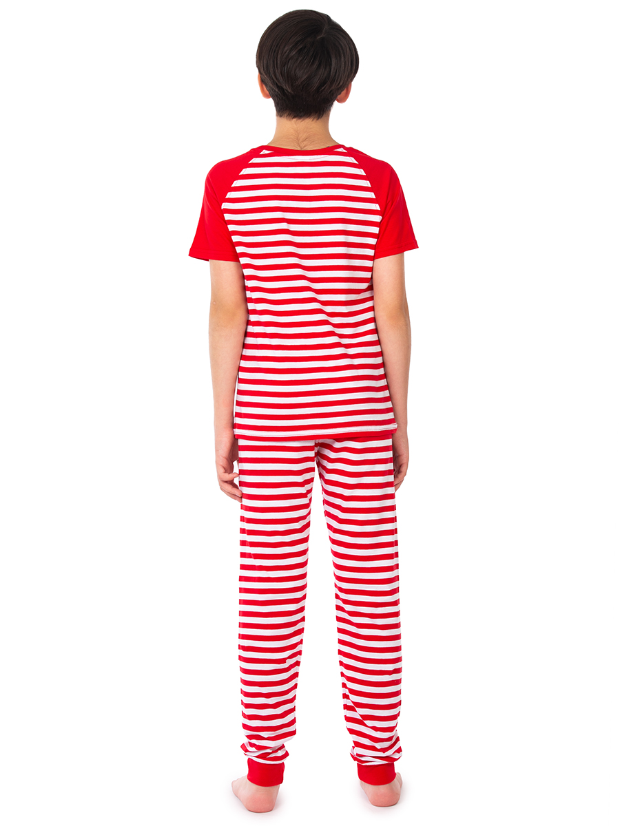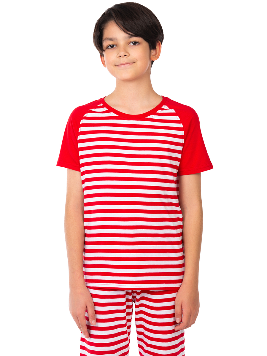 Стильная полосатая пижама для мальчика красного цвета прекрасное решение для обновления домашнего гардероба детей и подростков. Свободная модель с длинными штанами и футболкой обеспечивает уют и комфорт при любом занятии дома. Легкая детская пижама в полоску за счет дизайна унисекс подойдет для мальчиков и девочек 8 - 17 лет ростом от 128 до 164 см. Подбирая размер, воспользуйтесь замерами в таблице. Пижамные брюки и футболка с коротким рукавом выполнены из 100% хлопка. Трикотаж типа кулирное волокно очень мягкий, но при этом обладает хорошей износостойкостью и не деформируется после многих стирок. Хлопковая пижама с брюками комфортна и для сна, и для бодрствования дома. Ведь хб материалы не вызывают аллергию и позволяет телу дышать, что обеспечивает полноценный отдых. Трикотажная пижамка со штанами будет актуальна на любое время года, в том числе, на осень и зиму. Костюм имеет очень удобный крой. Манжеты внизу штанин и спущенный короткий рукав максимально комфортны для отдыха. Поэтому даже если у ребенка ил