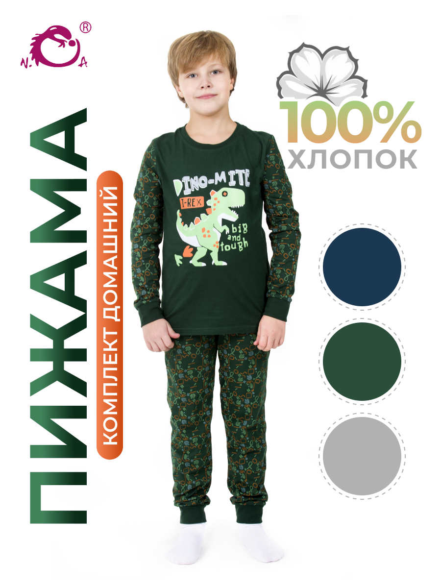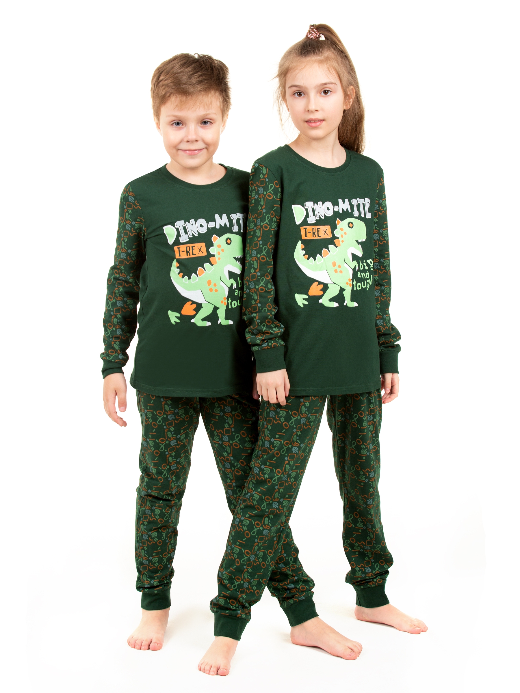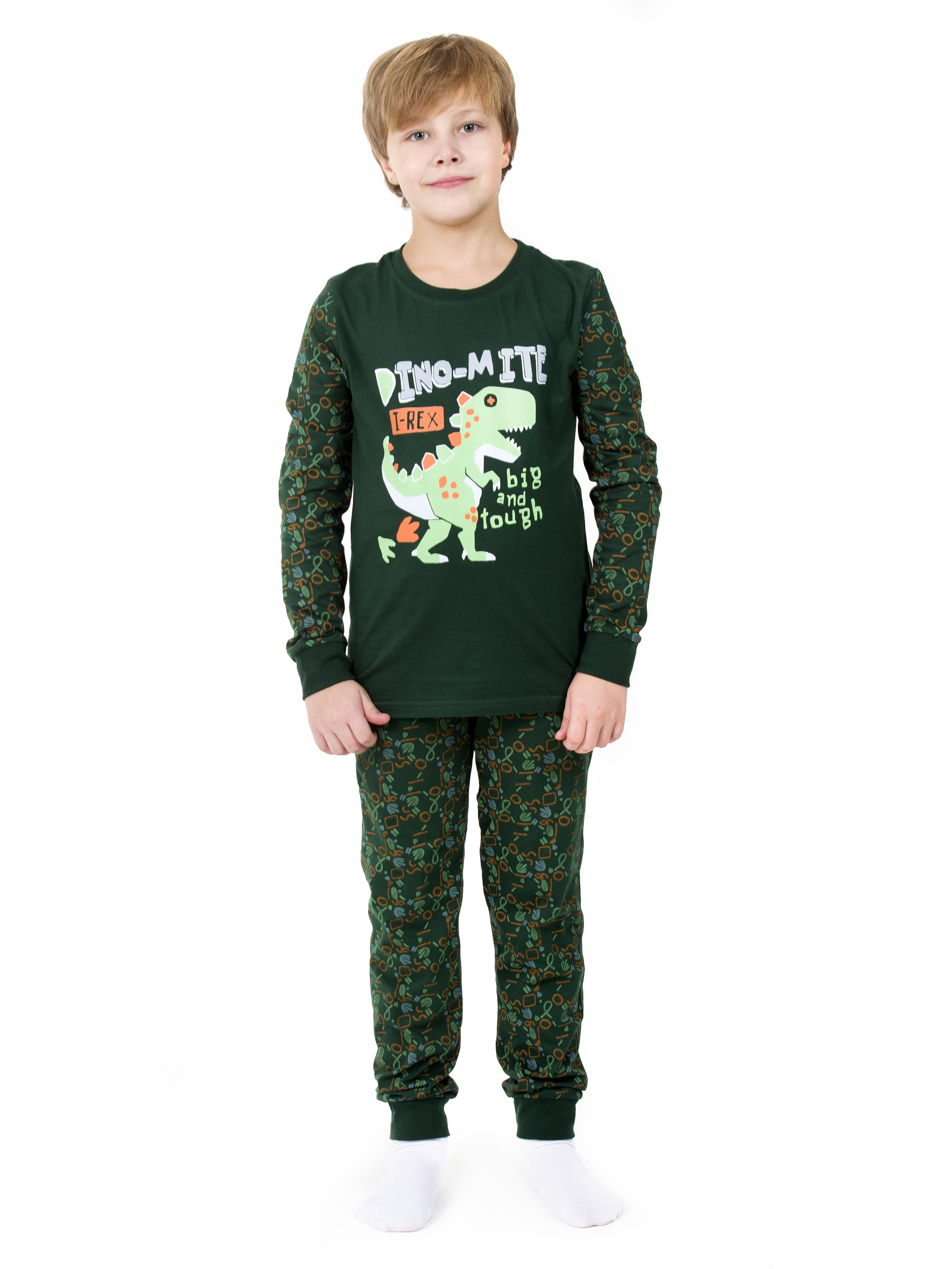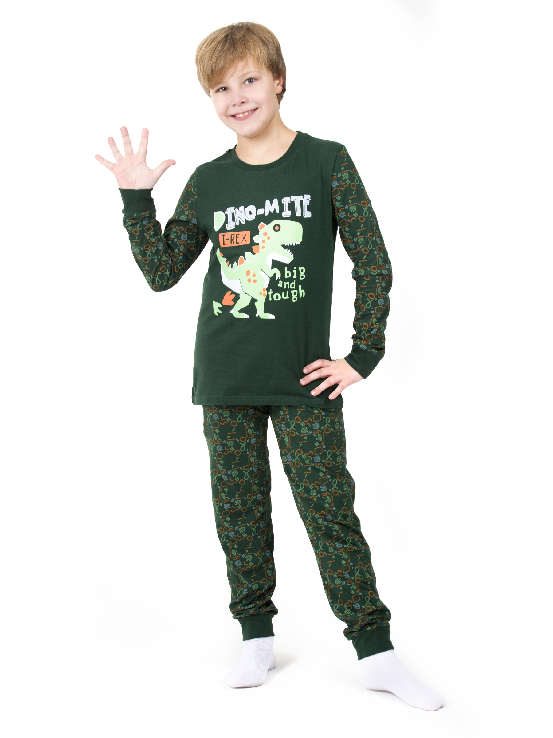 Детская пижама для мальчика зеленого цвета с длинным рукавом - стильная и удобная одежда для дома, сна и отдыха. Тип ткани - кулирное полотно. Домашний костюм двойка включает в себя: штаны и кофту. Лонгслив свободного прямого кроя с длинным рукавом. Брюки внизу собраны на манжет. Ночная пижамка выполнена из натурального хлопка. Хлопковая ткань мягкая, приятная для тела, хорошо пропускает воздух и создает комфортный микроклимат для кожи в любое время года. Одежда для дома отлично подойдет на осенний период и на зимний отопительный сезон. Сезон: осень зима. Легкая эстетичная пижама оверсайз без начеса очень удобна в носке. Комплект одежды не сковывает движений. Ночью в нем будет удобно во время сна. А днем - для активных игр дома. Пижамный хб костюм - оптимальный выбор для детского садика. Удобен для дневного сна в саду и для повседневной носки. Пижама украшена красивым принтом рисунком. Милая смешная пижамка с динозаврами. Красивый дизайн в корейском стиле с динозавриком подойдет для мальчиков и для девоче