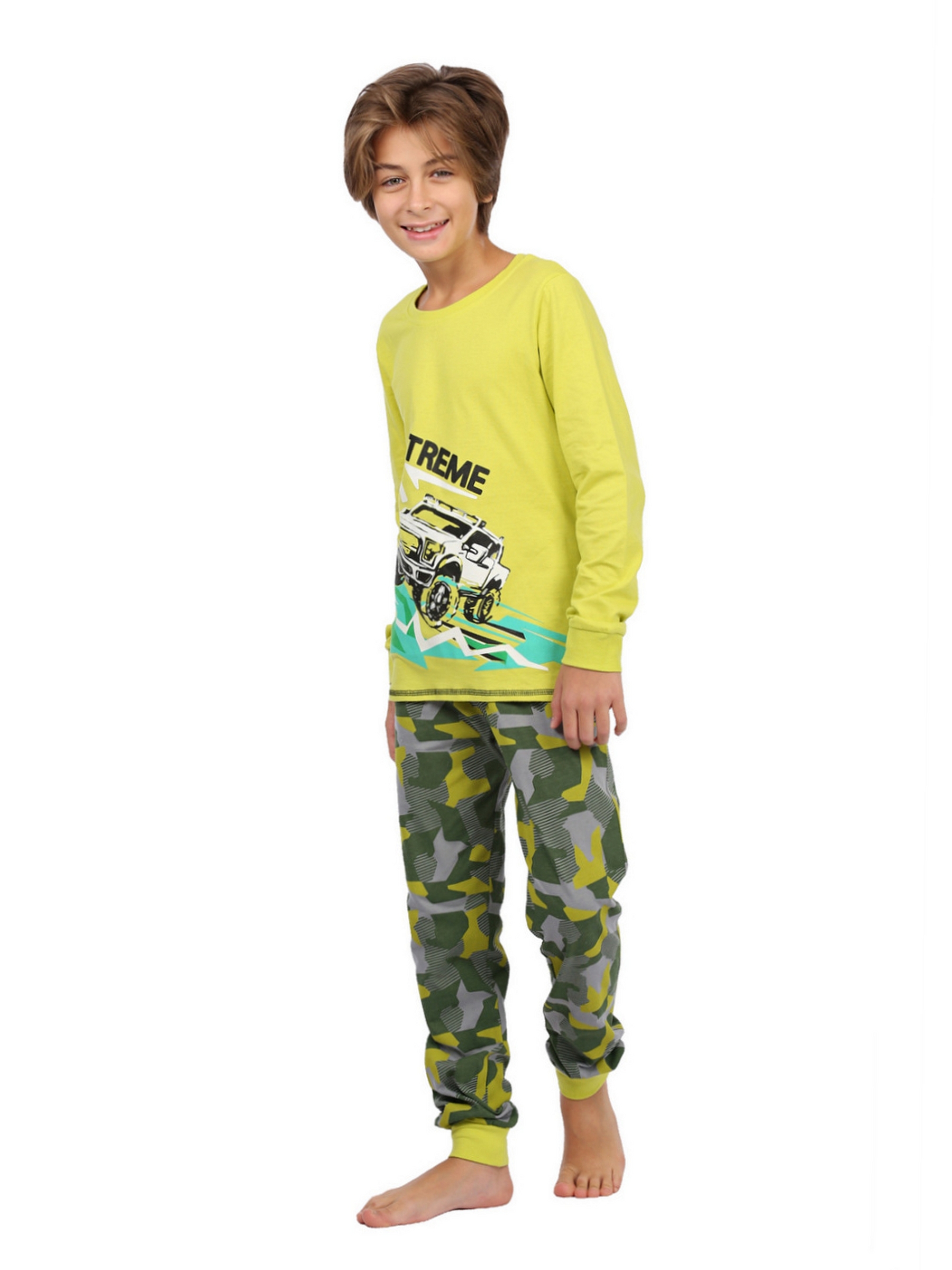 Детская пижама для мальчика салатового цвета с длинным рукавом - стильная и удобная одежда для дома, сна и отдыха. Тип ткани - кулирное полотно. Домашний костюм двойка включает в себя: штаны и кофту. Лонгслив свободного прямого кроя с длинным рукавом. Брюки внизу собраны на манжет. Ночная пижамка выполнена из натурального хлопка. Хлопковая ткань мягкая, приятная для тела, хорошо пропускает воздух и создает комфортный микроклимат для кожи в любое время года. Одежда для дома отлично подойдет на осенний период и на зимний отопительный сезон. Сезон: осень зима. Легкая эстетичная пижама оверсайз без начеса очень удобна в носке. Комплект одежды не сковывает движений. Ночью в нем будет удобно во время сна. А днем - для активных игр дома. Пижамный хб костюм - оптимальный выбор для детского садика. Удобен для дневного сна в саду и для повседневной носки. Пижама украшена красивым принтом рисунком. Милая смешная пижамка с машинками. Красивый дизайн в корейском стиле подойдет для мальчиков и для девочек. В размерной