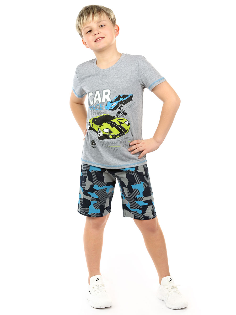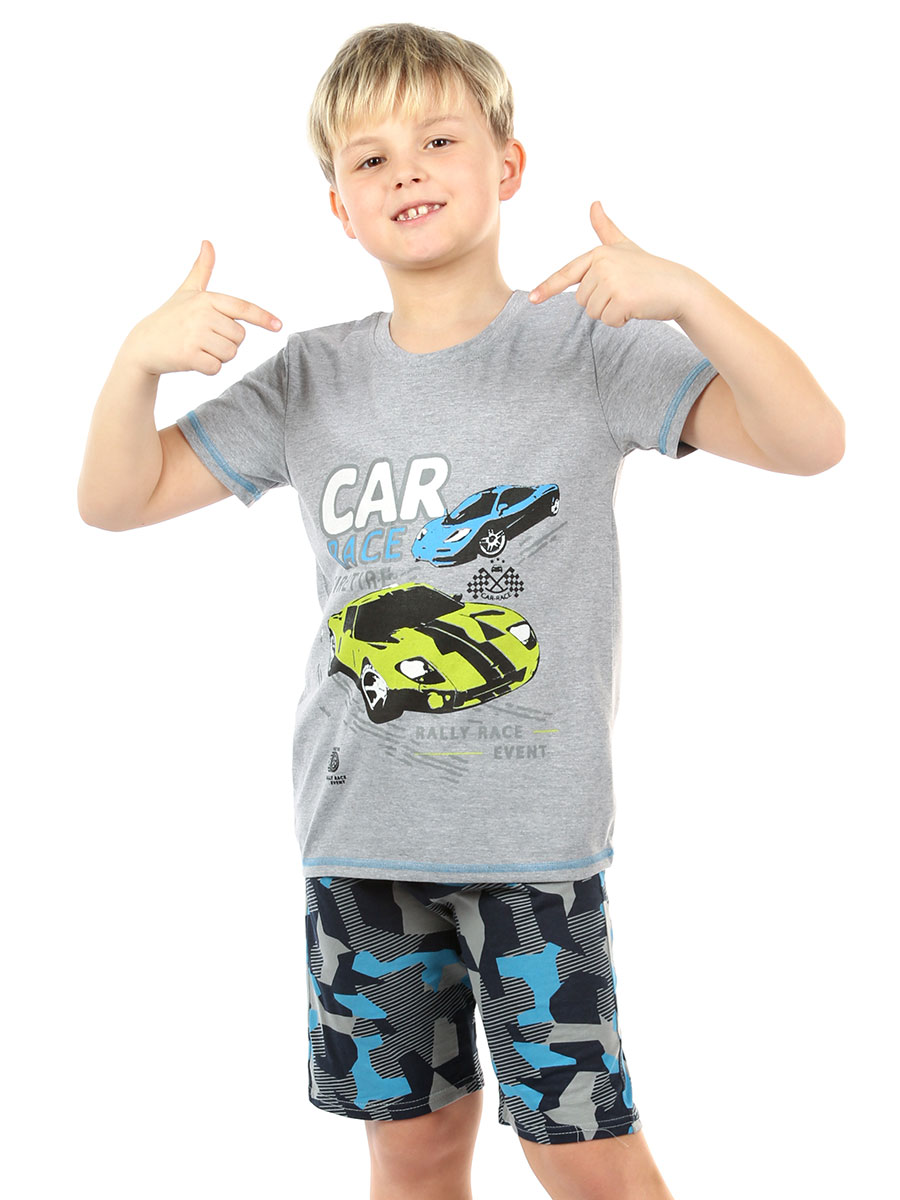 Детская пижама для мальчика серо-синего цвета с длинными шортами и принтом машинками обязательно понравится Вашему сыну или внуку. Сочетание модного дизайна, отличного качества и удобства - делает ее идеальным выбором для носки дома и в детском саду. Домашний костюм двойка включает в себя: футболку с коротким рукавом и шорты с рисунком. Майка и шорты могут носиться вместе или отдельно, в сочетании с другими предметами гардероба. Одежда выполнена из натурального хлопка. Хлопковая пижамка с шортиками легкая, мягкая и очень приятная для кожи. Она создаст комфортный микроклимат для тела в любое время года и в осенний период и в зимний отопительный сезон. Свободный крой оверсайз обеспечивает безупречную посадку на детей с любой комплекцией. Домашний ночной комплект очень удобен в носке. Пижамный костюм шорты и майка не сковывает движений, резинка практически не ощущается на коже. Не важно надел ребенок набор одежды для ночного сна или для активных игр днем - ему будет очень комфортно. Нарядный комплект отлично п