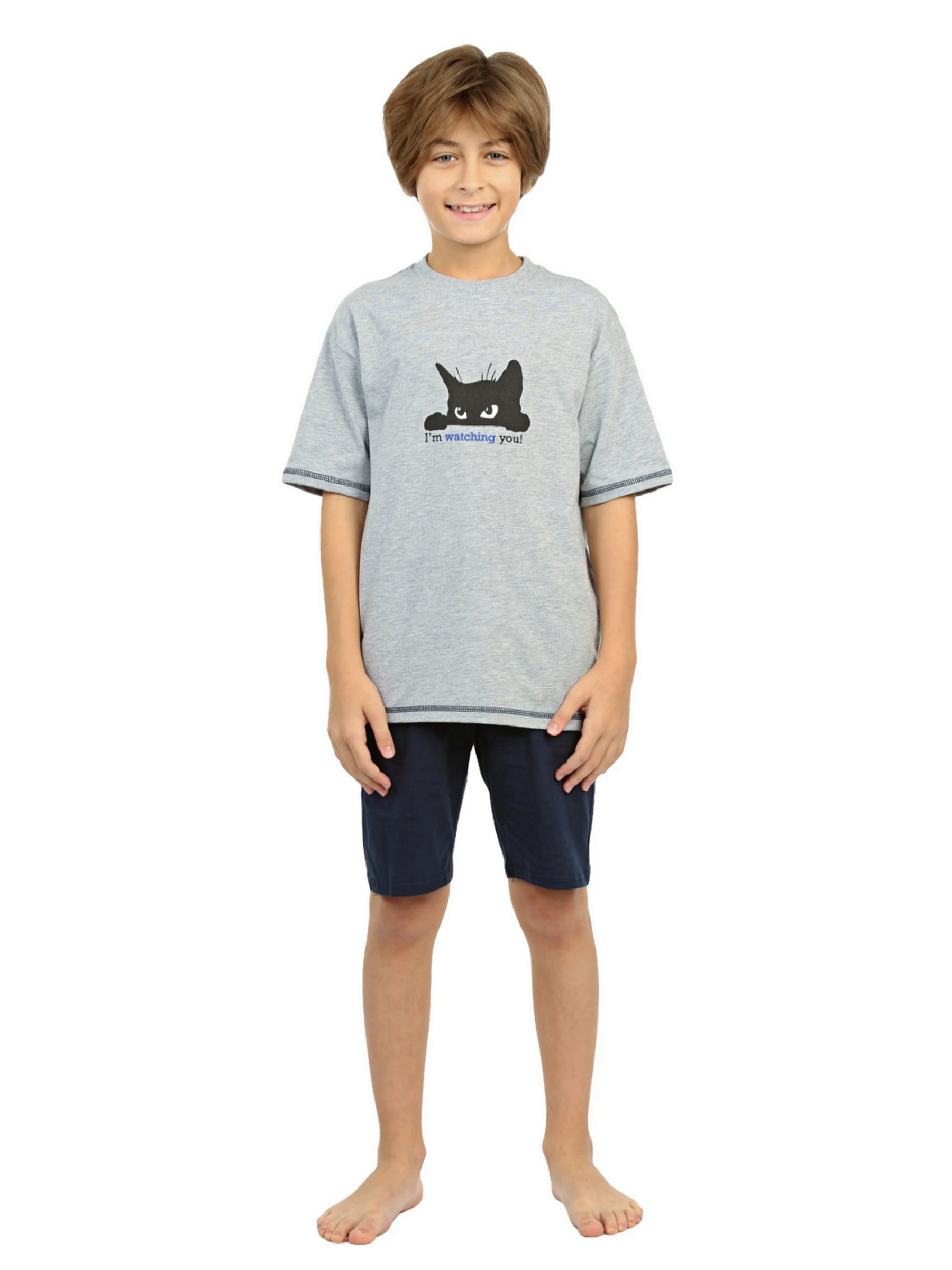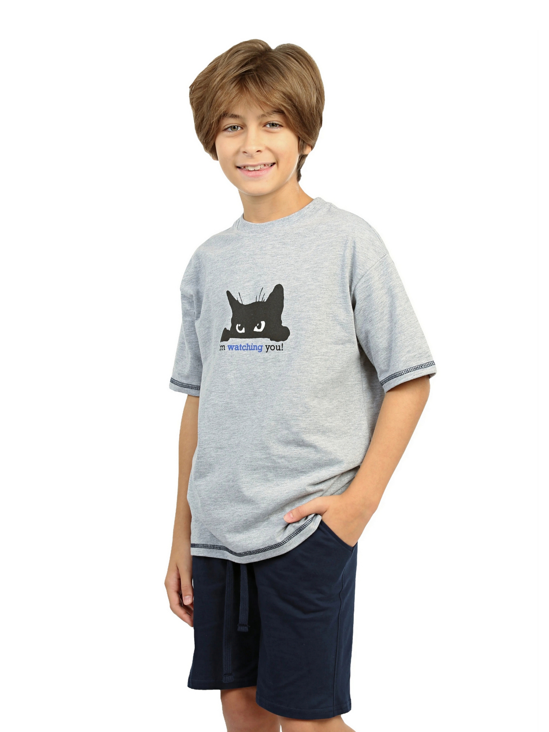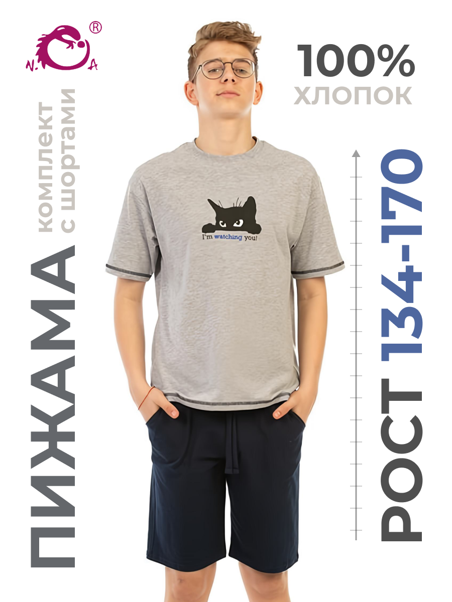 Пижама для мальчика и девочки с котиком – это комфорт и стиль, объединённые в одном комплекте, который станет незаменимой частью домашнего гардероба вашего ребёнка. Комплект состоит из футболки и шорт в стиле оверсайз, выполнен из 100% хлопка, что делает его невероятно мягким, приятным на ощупь и безопасным для нежной детской кожи. Трикотажная ткань отлично дышит, сохраняя комфорт даже в самые жаркие летние ночи, а прочные волокна сохраняют форму и цвет после множества стирок. Стильный оверсайз - крой добавляет пижаме современный вид и ещё больше удобства. Принт с котиком на детской пижаме украшает ее и добавляет красок в повседневную жизнь. Этот пижамный комплект идеально подходит не только для сна, но и для активных игр дома или на даче, а также для запоминающихся тематических фотосессий. Универсальный дизайн позволяет легко сочетать пижаму с другими домашними предметами гардероба. Красивая и практичная, эта пижама станет любимым выбором вашего ребёнка. Дарите тепло, уют и радость вместе с NOA – брендом, ко