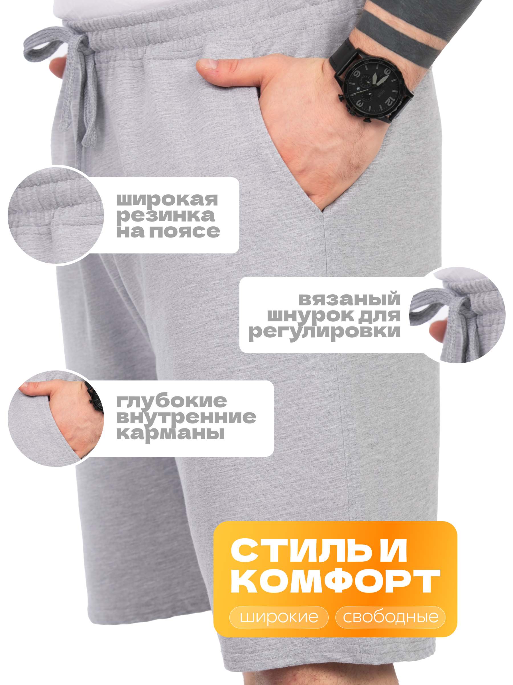 Мужские шорты, созданные для максимального удобства дома и на улице, идеально подойдут для повседневной жизни. Удлиненные шорты с карманами изготовлены из трикотажа ФУТЕР, который делает их приятными к телу и максимально комфортными в носке. Летние шорты длиной до колена для мужчин подойдут для прогулок или отдыха на пикнике, а также станут незаменимым элементом одежды для тренировок. Благодаря наличию шнурка на поясе можно легко подогнать их по фигуре так, чтобы было удобно именно вам. Шорты длинные и широкие прямого кроя, этим они обеспечивают свободу движений. Имеют функциональные карманы, где можно сохранить необходимые мелочи. Мужские хлопковые шорты с добавлением полиэстера, для износостойкости и несминаемости ткани, позволяют коже дышать и отлично подходят для лета. Шорты спортивные мужские будут прекрасным выбором для тех, кто ценит комфорт во время спортивных занятий или домашних тренировок. Летние мужские шорты подойдут и для рыбалки, в них удобно проводить время на открытом воздухе. Шорты прекрасно