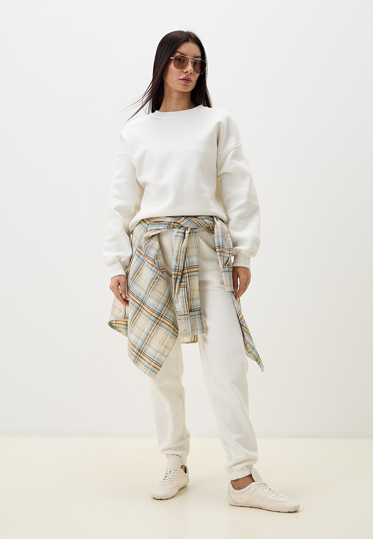 Утепленные брюки женские - незаменимая базовая вещь вашего гардероба! Состав: 75% хлопок, 25% пэ. Футер 3х нитка с начесом, качество Пенье( трикотаж). Начес очень приятный к телу, как флис. Объемная и утепленная модель, идеально для весны-осени, зимы (теплый). Базовые женские однотонные брюки - обязательная вещь Вашего гардероба. Стильные, модные брюки женские с начесом молочного цвета, выполнены из качественного хлопкового трикотажа, который не деформируется и прослужит вам долго. Однотонные брюки джоггеры - классическая женская одежда и прекрасная альтернатива обычным брюкам и джинсам. Свободный крой брюк, деликатно скроет несовершенства фигуры, а большие размеры отлично сядут на беременных животиках. Универсальные женские брюки без принта и надписи впишутся в любой образ - деловой в офис, расслабленный повседневный с толстовками, худи, в кино или на прогулку с друзьями, для занятий спортом и фитнеса на свежем воздухе, в поезд и самолет, а также женские джоггеры с начесом идеальный вариант домашней одежды д