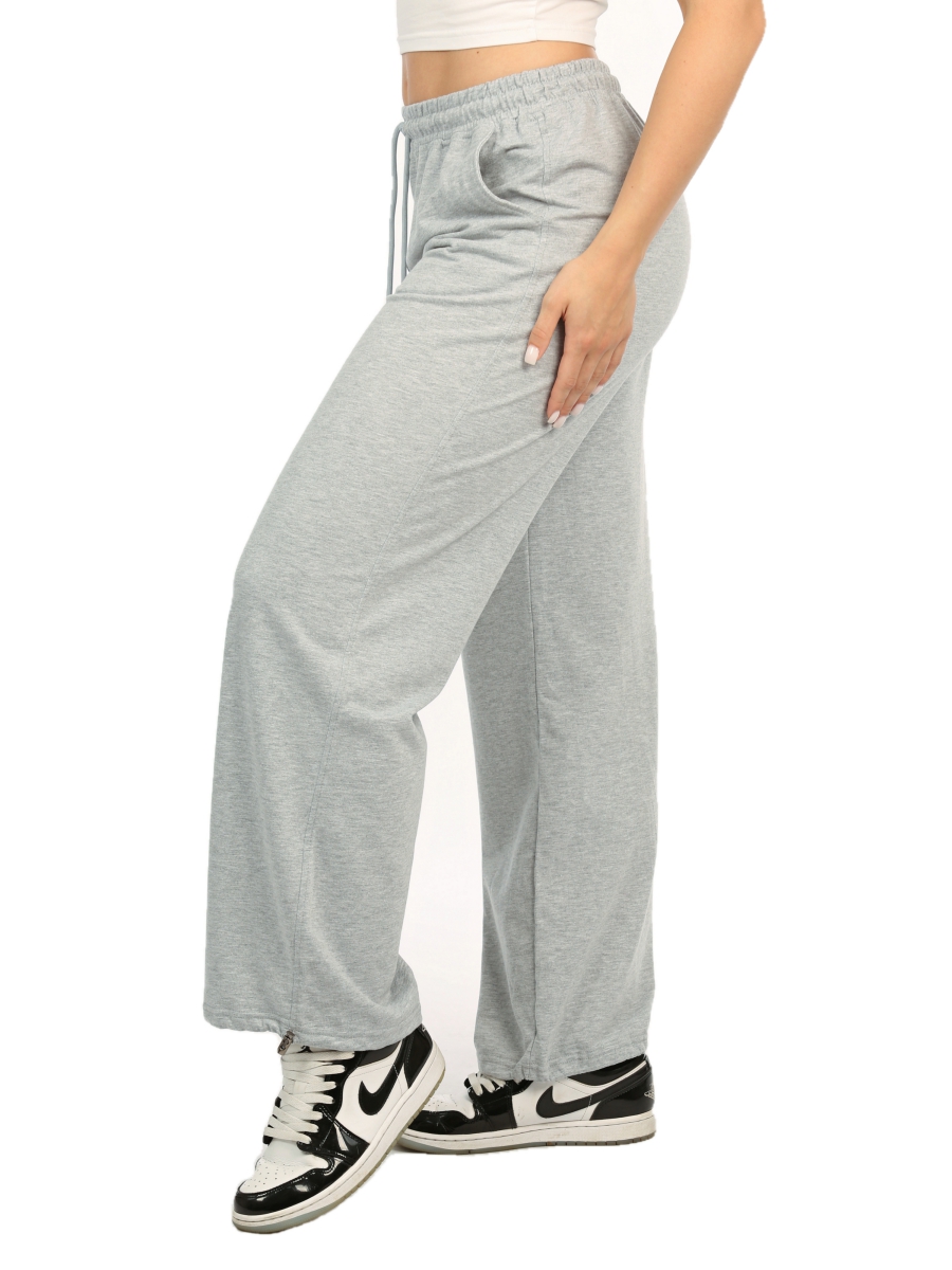 Стильные женские брюки палаццо со стоперами цвета светло-серый меланж имеют прямой крой, эластичный пояс на резинке и карманы, что обеспечивает идеальную посадку и удобство во время движений. Брюки, изготовлены из футера двухнитки, который славится своей прочностью и долговечностью носки изделия. Высококачественный футер имеет в составе 75% хлопка, что обеспечивает вентиляцию и комфорт во время носки. Идеально подходят для спортивных тренировок, прогулок или просто для домашнего отдыха. Стиль оверсайз делает их привлекательными и модными в любое время года. Вы можете использовать их как для тренировки, фитнеса, так и для спокойного отдыха дома. Штаны имеют карманы — можно хранить мелочи под рукой. Прямой крой от бедра позволяет скрывать все недостатки фигуры. Они могут сочетаться со спортивными или праздничными топами без труда. Несмотря на разнообразие стилей, от офисных до танцевальных, они всегда остаются актуальными и современными.