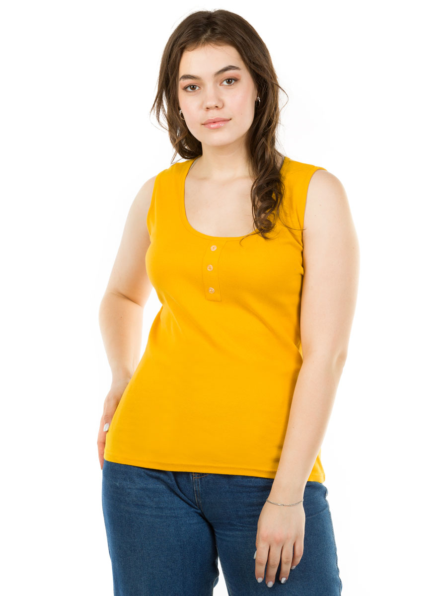 Майка женская под пиджак горчичного цвета прекрасно впишется в повседневный гардероб. Стильная модель в обтяжку с широкими бретельками отлично комбинируется с любыми образами. Хлопковая ткань приятно облегает тело и позволяет коже дышать. Такой материал идеально подходит на каждый день и для офиса, и для дома. Удлиненный топ на широких лямках выполнен из качественного трикотажа лапша. За счет этого прямая базовая майка в рубчик очень стильно смотрится и может использоваться для различных случаев. Такая молодежная одежда подойдет как под офисный стиль, так и под спортивный или повседневный образ. Прекрасно комбинируется со строгими брюками или кэжуал юбками. Облегающая классическая майка не просвечивает и хорошо тянется. Хб ткань обеспечивает идеальную посадку и формирует красивый стройный силуэт. Модель удобна для спорта, бега и фитнеса. Трикотажный обтягивающий топик с открытыми плечами актуален для женщин любого возраста, подойдет для высоких и невысоких девушек. Наличие же больших размеров будет удобно для