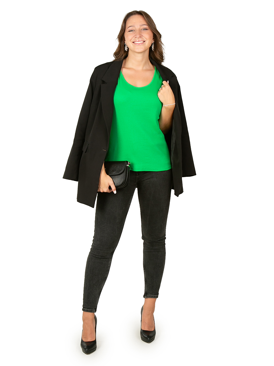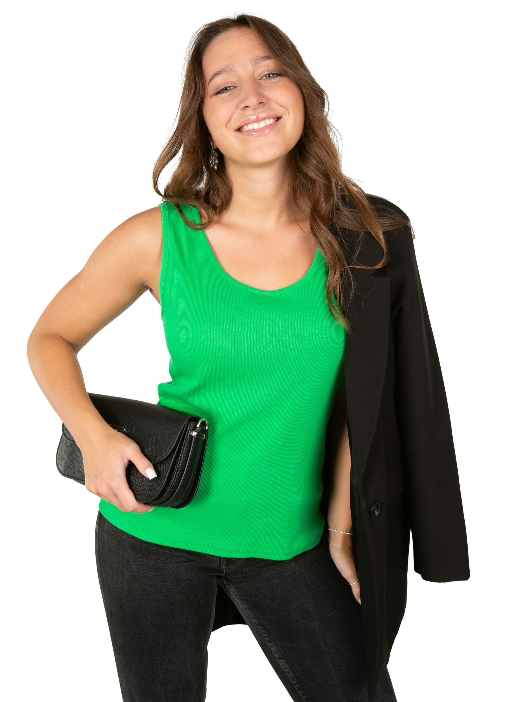 Майка женская под пиджак зеленого цвета прекрасно впишется в повседневный гардероб. Стильная модель в обтяжку с широкими бретельками отлично комбинируется с любыми образами. Преимущественно хлопковая ткань с добавлением лайкры приятно облегает тело и позволяет коже дышать. Такой материал идеально подходит на каждый день и для офиса, и для дома. Удлиненный топ на широких лямках выполнен из качественного трикотажа лапша. За счет этого прямая базовая майка в рубчик очень стильно смотрится и может использоваться для различных случаев. Такая молодежная одежда подойдет как под офисный стиль, так и под спортивный или повседневный образ. Прекрасно комбинируется со строгими брюками или кэжуал юбками. Облегающая классическая майка не просвечивает и хорошо тянется. Благодаря эластану хб ткань обеспечивает идеальную посадку и формирует красивый стройный силуэт. Модель удобна для спорта, бега и фитнеса. Трикотажный обтягивающий топик с открытыми плечами актуален для женщин любого возраста, подойдет для высоких и невысоких