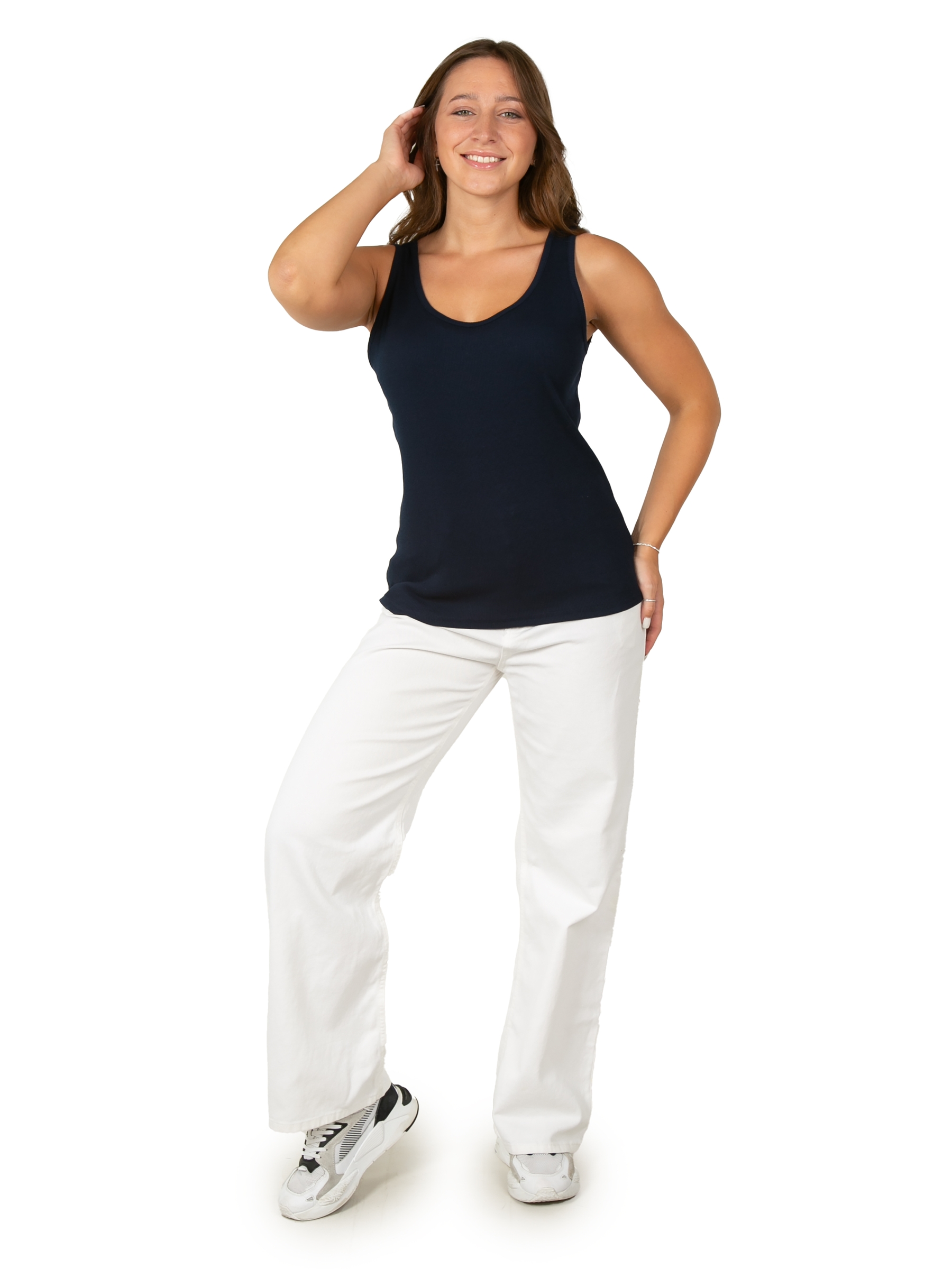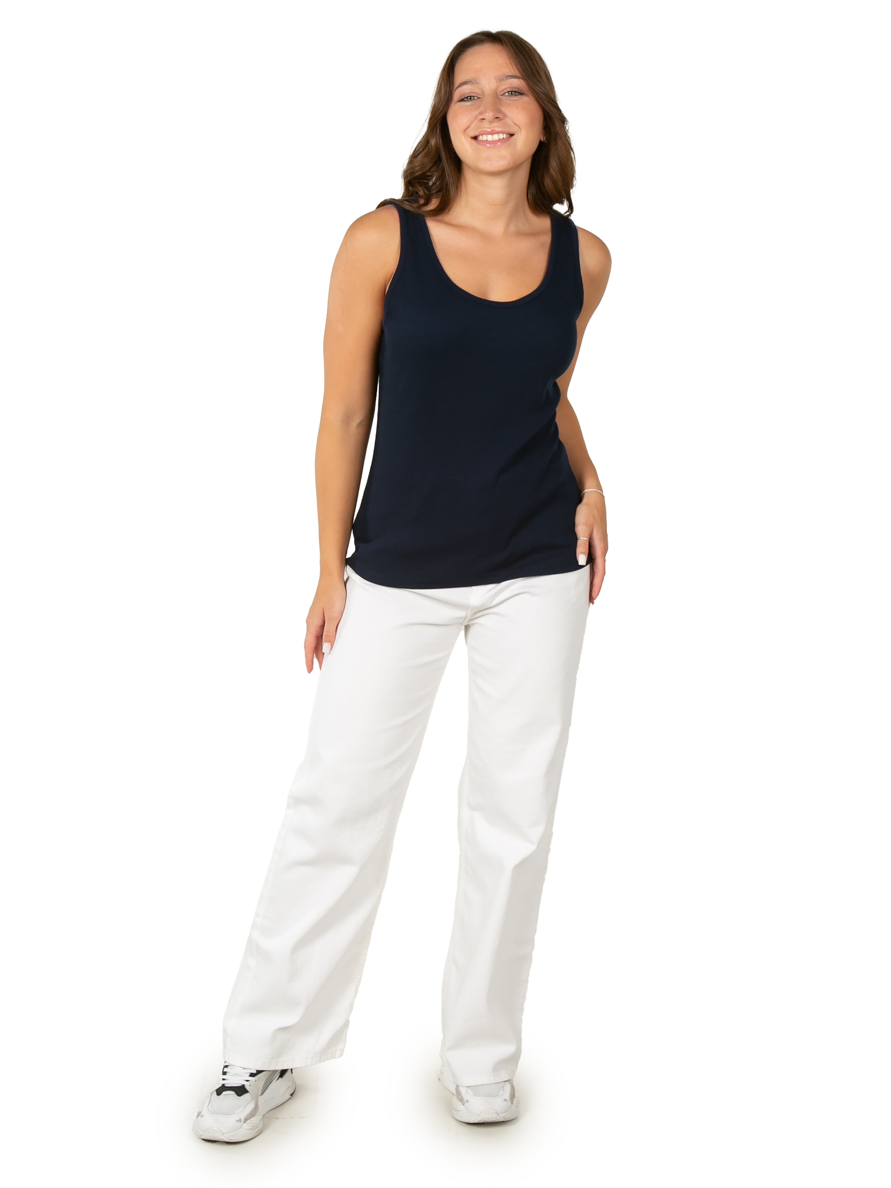 Майка женская под пиджак темно-синего цвета прекрасно впишется в повседневный гардероб. Стильная модель в обтяжку с широкими бретельками отлично комбинируется с любыми образами. Преимущественно хлопковая ткань с добавлением лайкры приятно облегает тело и позволяет коже дышать. Такой материал идеально подходит на каждый день и для офиса, и для дома. Удлиненный топ на широких лямках выполнен из качественного трикотажа лапша. За счет этого прямая базовая майка в рубчик очень стильно смотрится и может использоваться для различных случаев. Такая молодежная одежда подойдет как под офисный стиль, так и под спортивный или повседневный образ. Прекрасно комбинируется со строгими брюками или кэжуал юбками. Облегающая классическая майка не просвечивает и хорошо тянется. Благодаря эластану хб ткань обеспечивает идеальную посадку и формирует красивый стройный силуэт. Модель удобна для спорта, бега и фитнеса. Трикотажный обтягивающий топик с открытыми плечами актуален для женщин любого возраста, подойдет для высоких и невыс