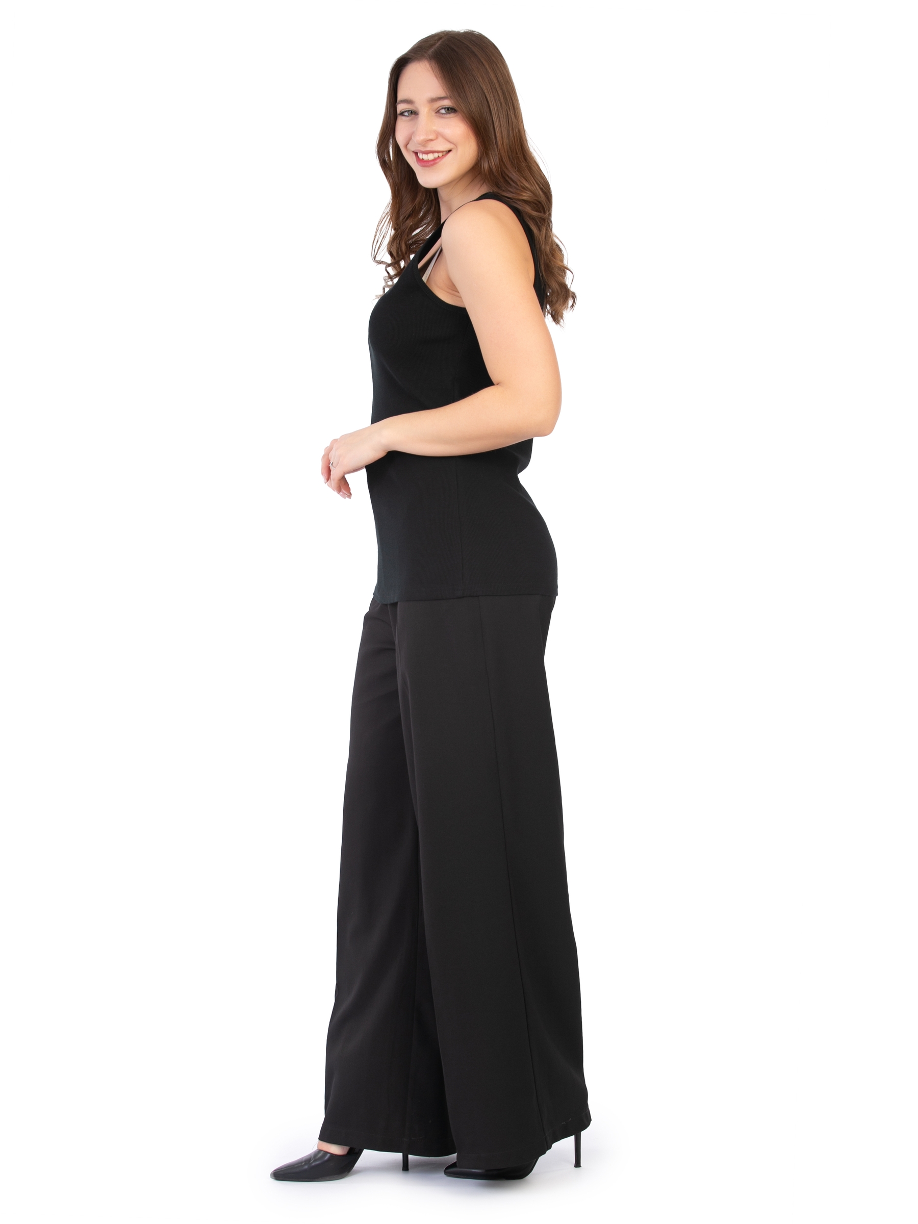 Майка женская под пиджак черного цвета прекрасно впишется в повседневный гардероб. Стильная модель в обтяжку с широкими бретельками отлично комбинируется с любыми образами. Преимущественно хлопковая ткань с добавлением лайкры приятно облегает тело и позволяет коже дышать. Такой материал идеально подходит на каждый день и для офиса, и для дома. Удлиненный топ на широких лямках выполнен из качественного трикотажа лапша. За счет этого прямая базовая майка в рубчик очень стильно смотрится и может использоваться для различных случаев. Такая молодежная одежда подойдет как под офисный стиль, так и под спортивный или повседневный образ. Прекрасно комбинируется со строгими брюками или кэжуал юбками. Облегающая классическая майка не просвечивает и хорошо тянется. Благодаря эластану хб ткань обеспечивает идеальную посадку и формирует красивый стройный силуэт. Модель удобна для спорта, бега и фитнеса. Трикотажный обтягивающий топик с открытыми плечами актуален для женщин любого возраста, подойдет для высоких и невысоких
