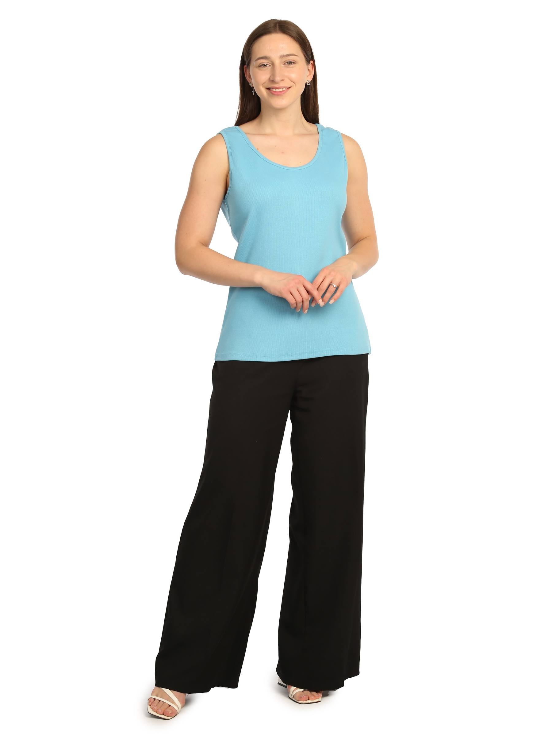Майка женская под пиджак голубого цвета прекрасно впишется в повседневный гардероб. Стильная модель в обтяжку с широкими бретельками отлично комбинируется с любыми образами. Преимущественно хлопковая ткань с добавлением лайкры приятно облегает тело и позволяет коже дышать. Такой материал идеально подходит на каждый день и для офиса, и для дома. Удлиненный топ на широких лямках выполнен из качественного трикотажа лапша. За счет этого прямая базовая майка в рубчик очень стильно смотрится и может использоваться для различных случаев. Такая молодежная одежда подойдет как под офисный стиль, так и под спортивный или повседневный образ. Прекрасно комбинируется со строгими брюками или кэжуал юбками. Облегающая классическая майка не просвечивает и хорошо тянется. Благодаря эластану хб ткань обеспечивает идеальную посадку и формирует красивый стройный силуэт. Модель удобна для спорта, бега и фитнеса. Трикотажный обтягивающий топик с открытыми плечами актуален для женщин любого возраста, подойдет для высоких и невысоких