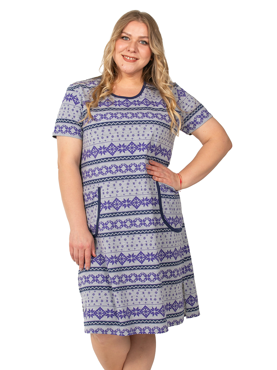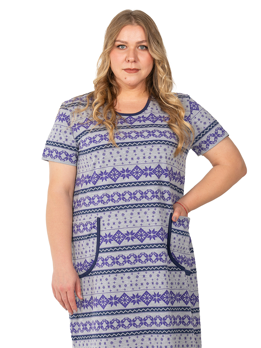 Платье для дома с карманами сиреневого цвета станет идеальным вариантом для уютных вечеров и отдыха. Оно выполнено из трикотажного материала, который приятно обнимает тело. Это обеспечивает комфорт в носке на протяжении всего дня. Ткань состоит из 100% хлопка, что делает изделие гипоаллергенным и безопасным для чувствительной кожи. Модель отличается свободным кроем. Конструкция позволяет легко двигаться, не стесняя движений. Удобные карманы добавляют практичности и делают образ еще более стильным. Данный вариант также идеально подходит для полных женщин благодаря продуманному дизайну. Имеются интересные детали - разрезы по бокам, которые подчеркивают индивидуальность каждой женщины. Эта туника отлично подходит для домашней обстановки. Кулирное полотно держит форму, а также обеспечивает хорошую воздухопроницаемость. Это особенно важно в холодное время года или осенние дни. Специальный новогодний рисунок придаст изделию особое настроение в зимний период. Такая деталь создаст атмосферу праздника даже в пов